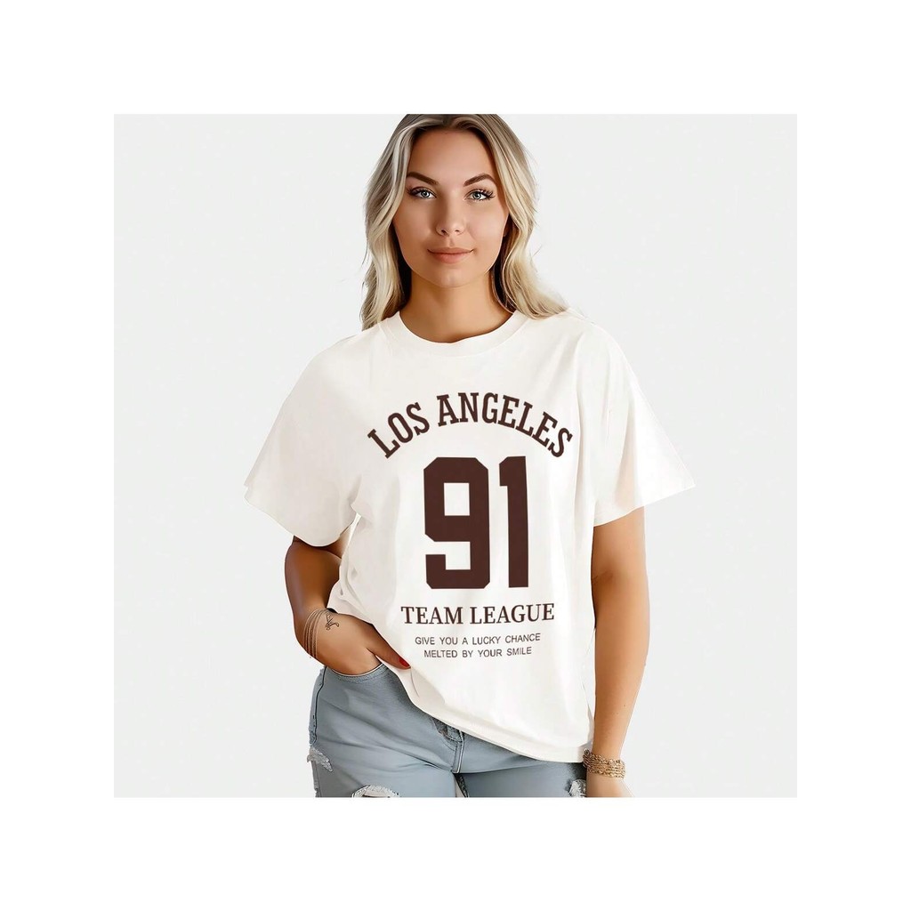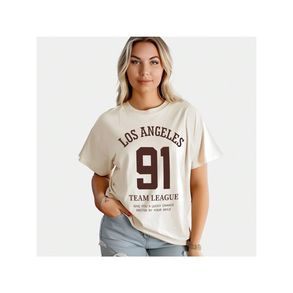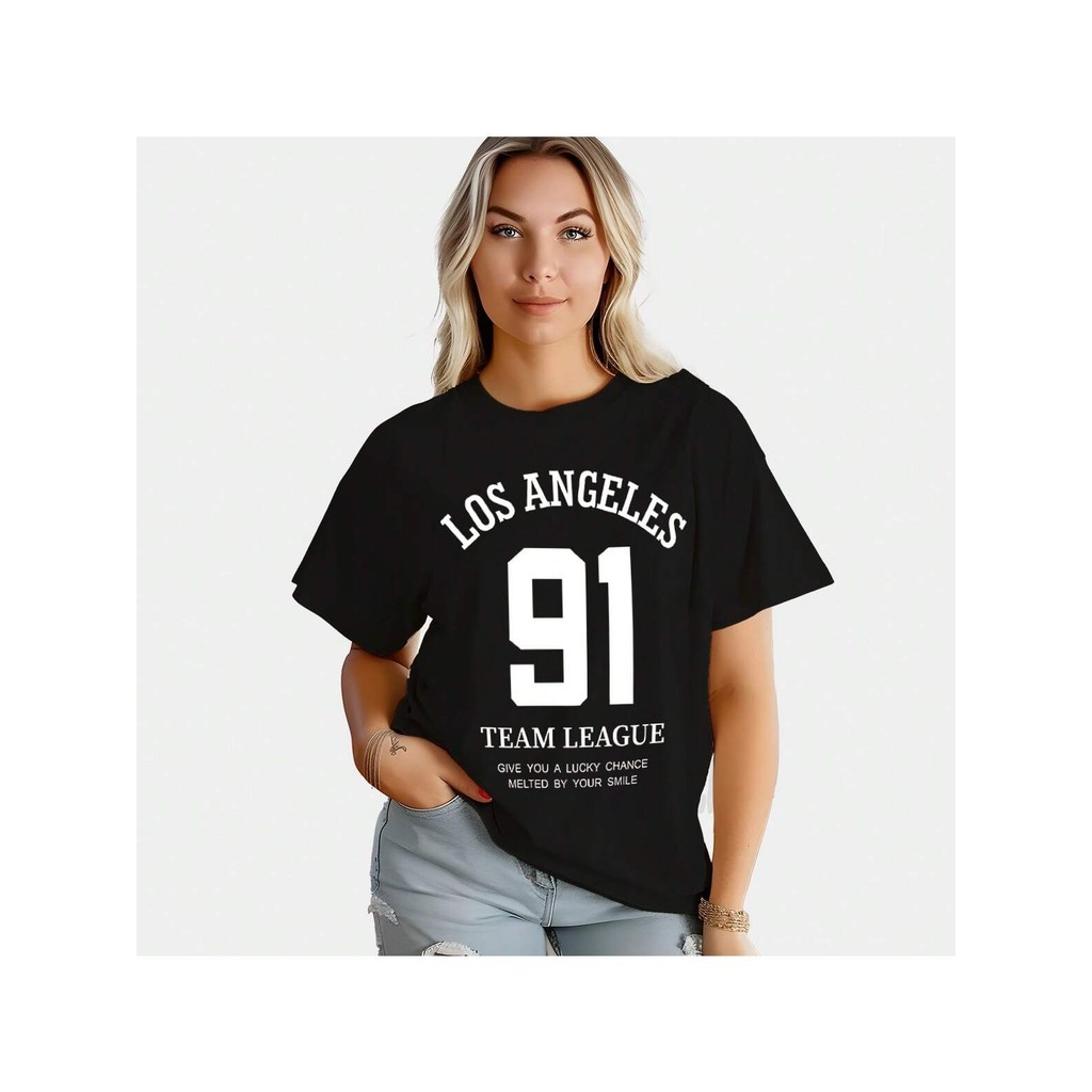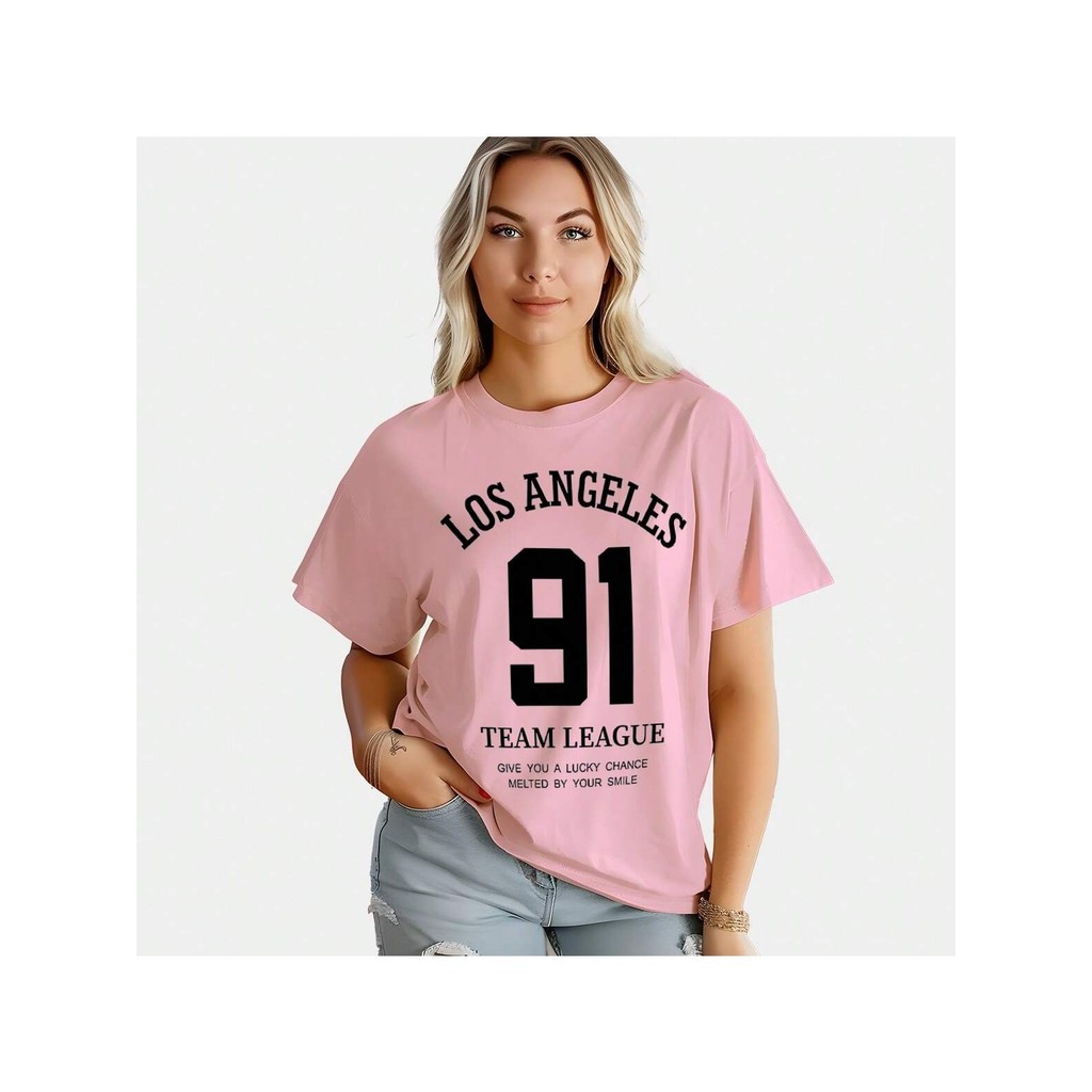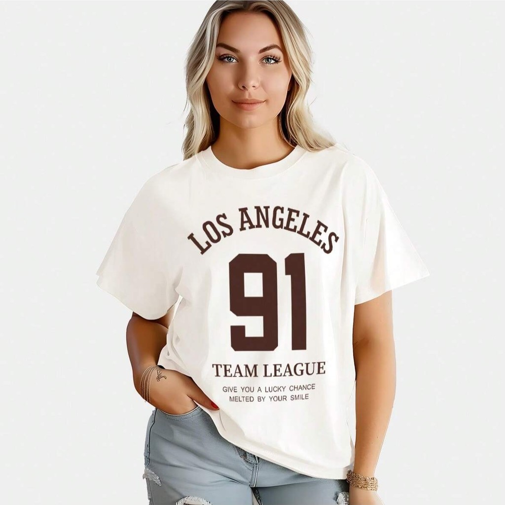 Camiseta Feminina Streetwear 100% Algodão Estampada Los Angeles 91 Camisa Premium