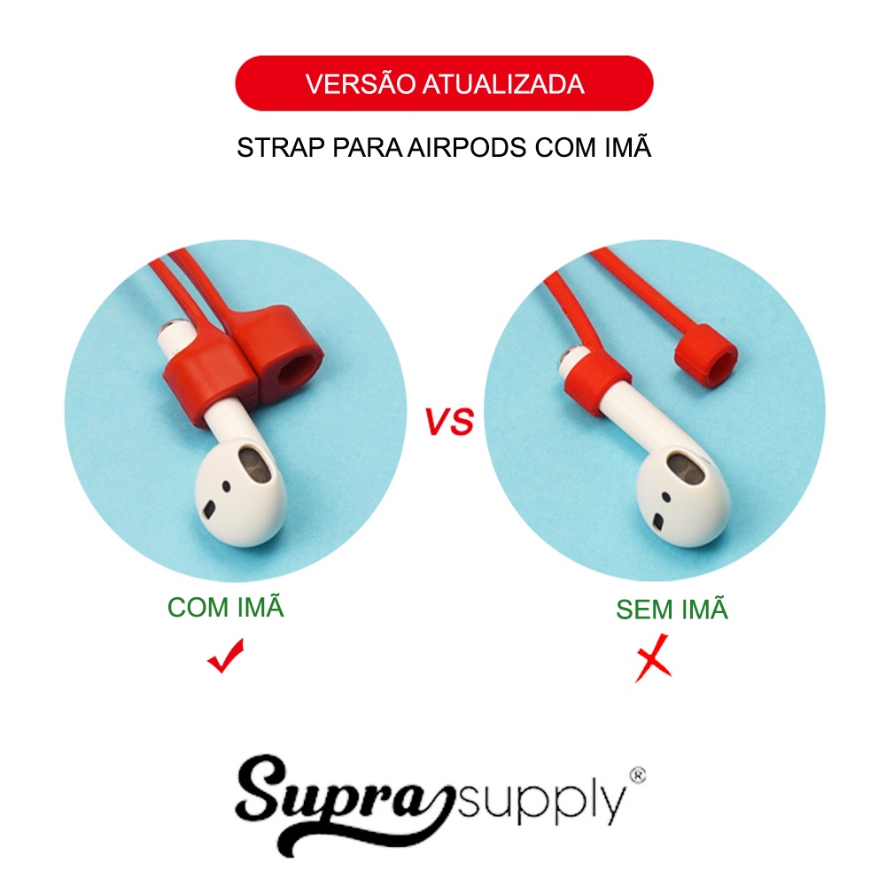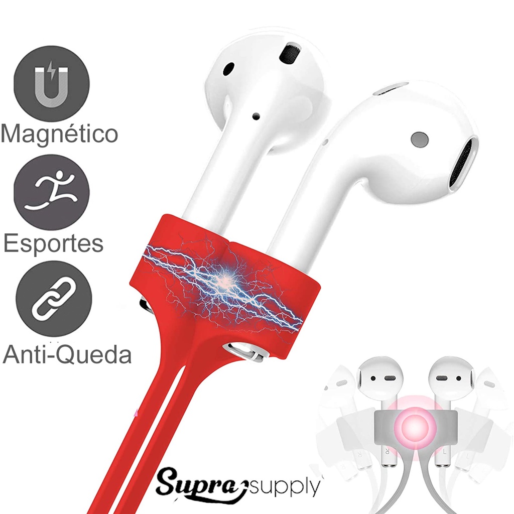 Kit 2 Fios Fone Ouvido in-ear Sem fio Compatível com AirPods 1 2 3 Cordinha Magnética Anti Queda