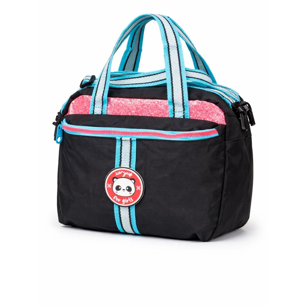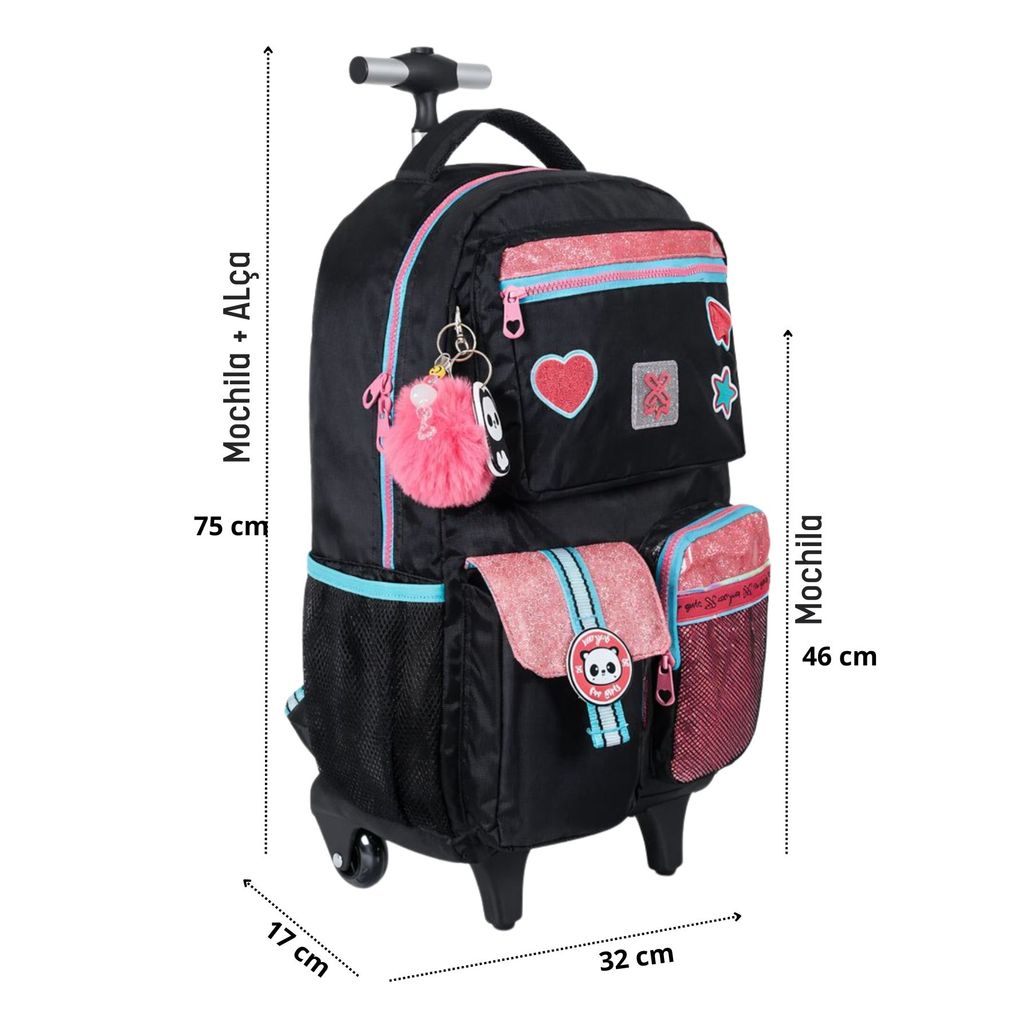 Kit Conjunto Escolar Juvenil Menina Glitter Panda Mochila Rodas e Costas + Lancheira Térmica