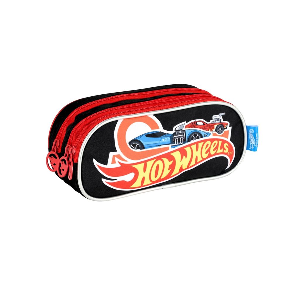 Estojo Escolar Penal Triplo 3 Compartimentos Juvenil Menino Carro Hot Wheels Original ET49985
