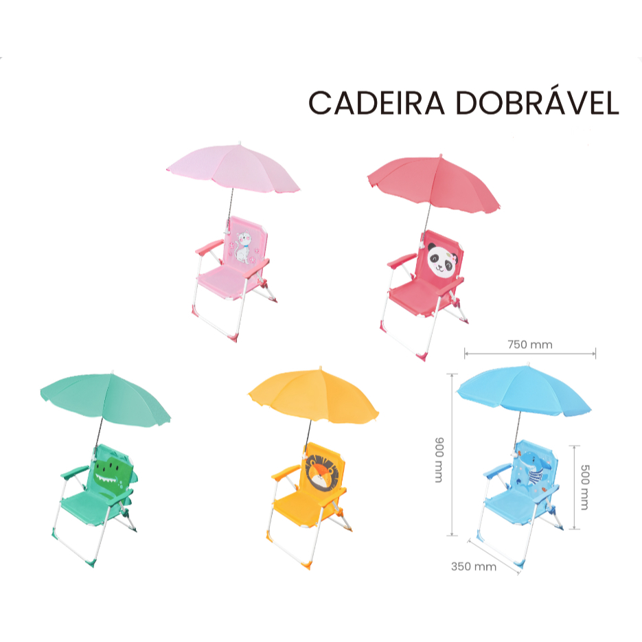 Cadeira De Praia Dobrável Com Guarda Sol Criança Praia Piscina Lazer