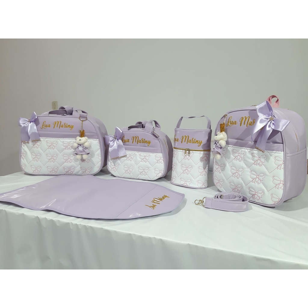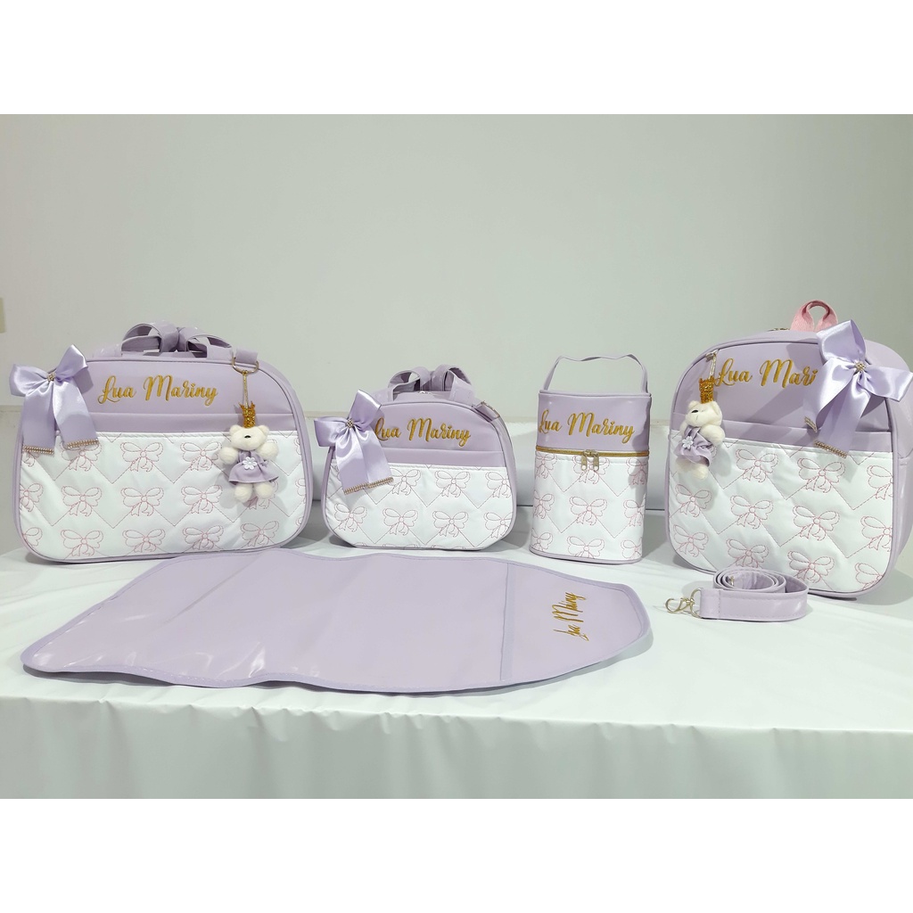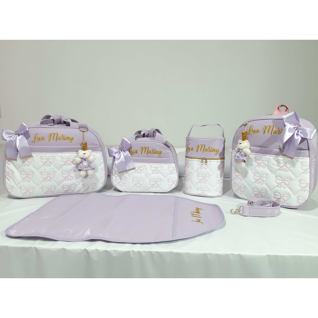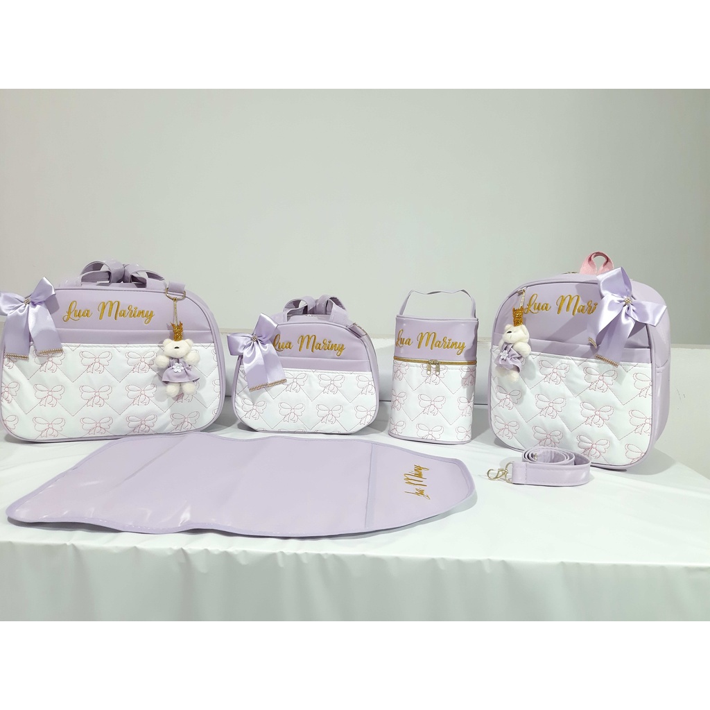 kit bolsas maternidade luxo laçinho 5 pç rosa personalizada