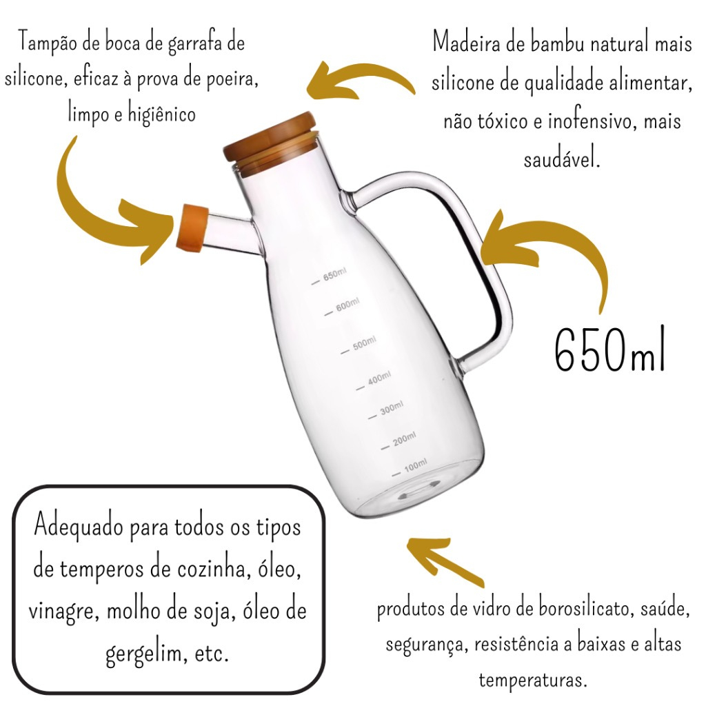 Galheteiro De Vidro 650ml Com Bico Para Azeite Vinagre Tampa De Bambu