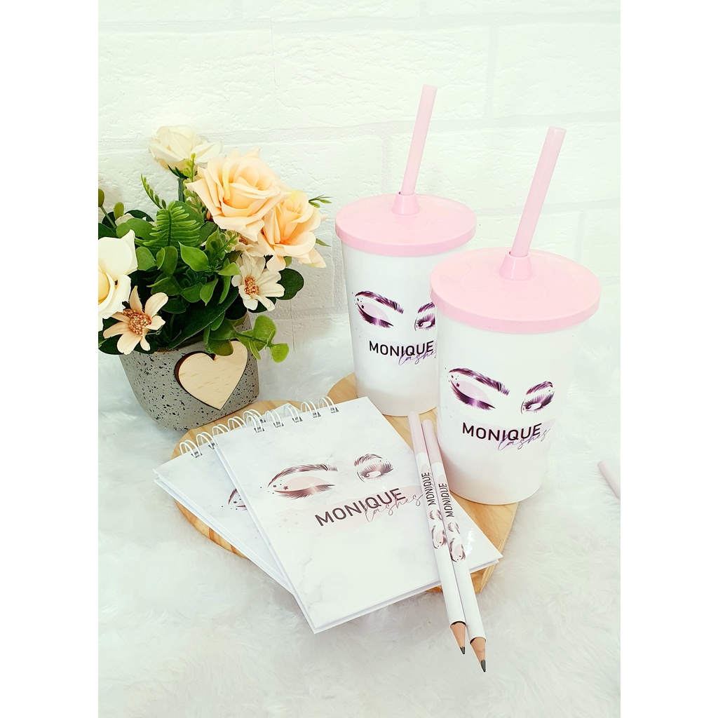 5 Kits Cursos Personalizados (Caixa + Bloquinhos+lápis+copo+certificado) Design de Sombrancelhas, Boas Vindas, Empresas
