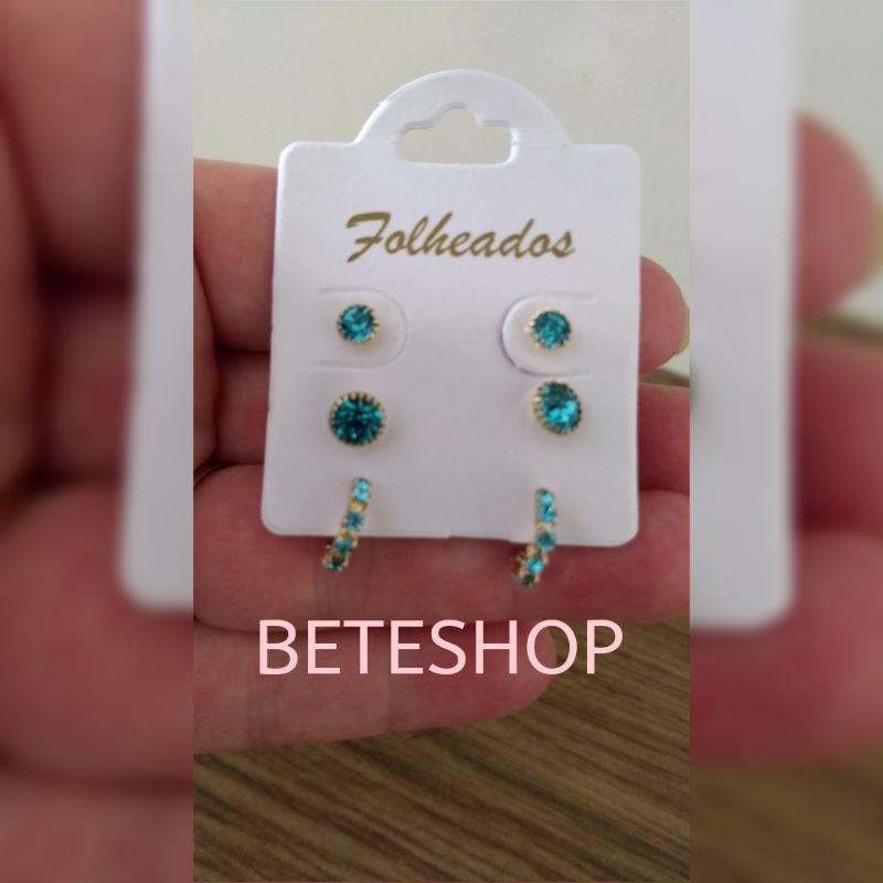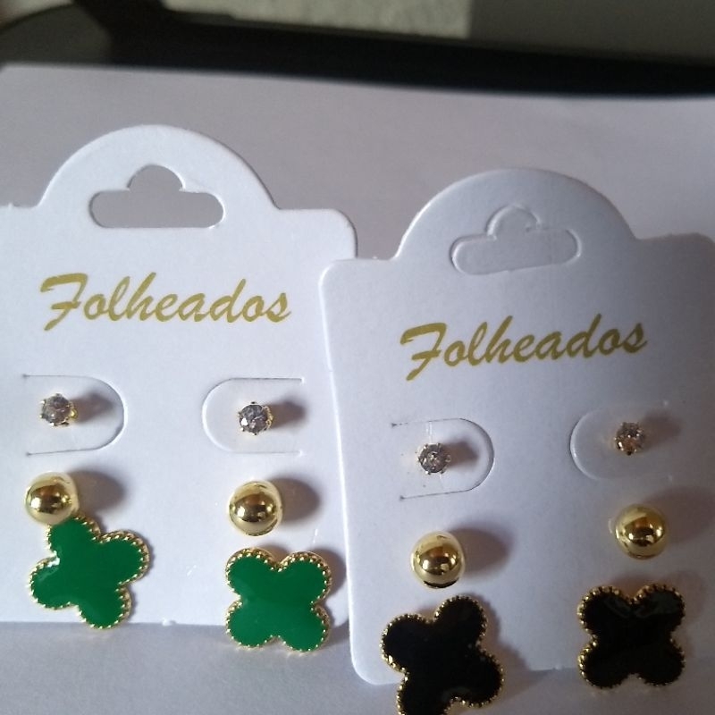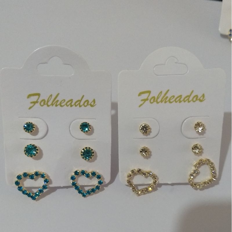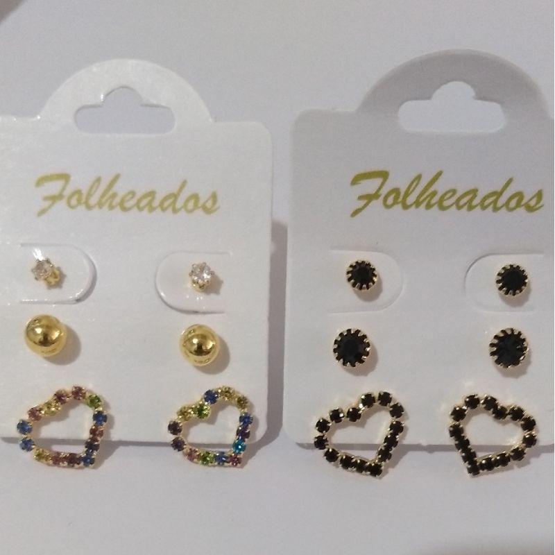 Kit Trio 06 Pares Brinco Folheado Dourado/ Perola e Strass Feminino o
