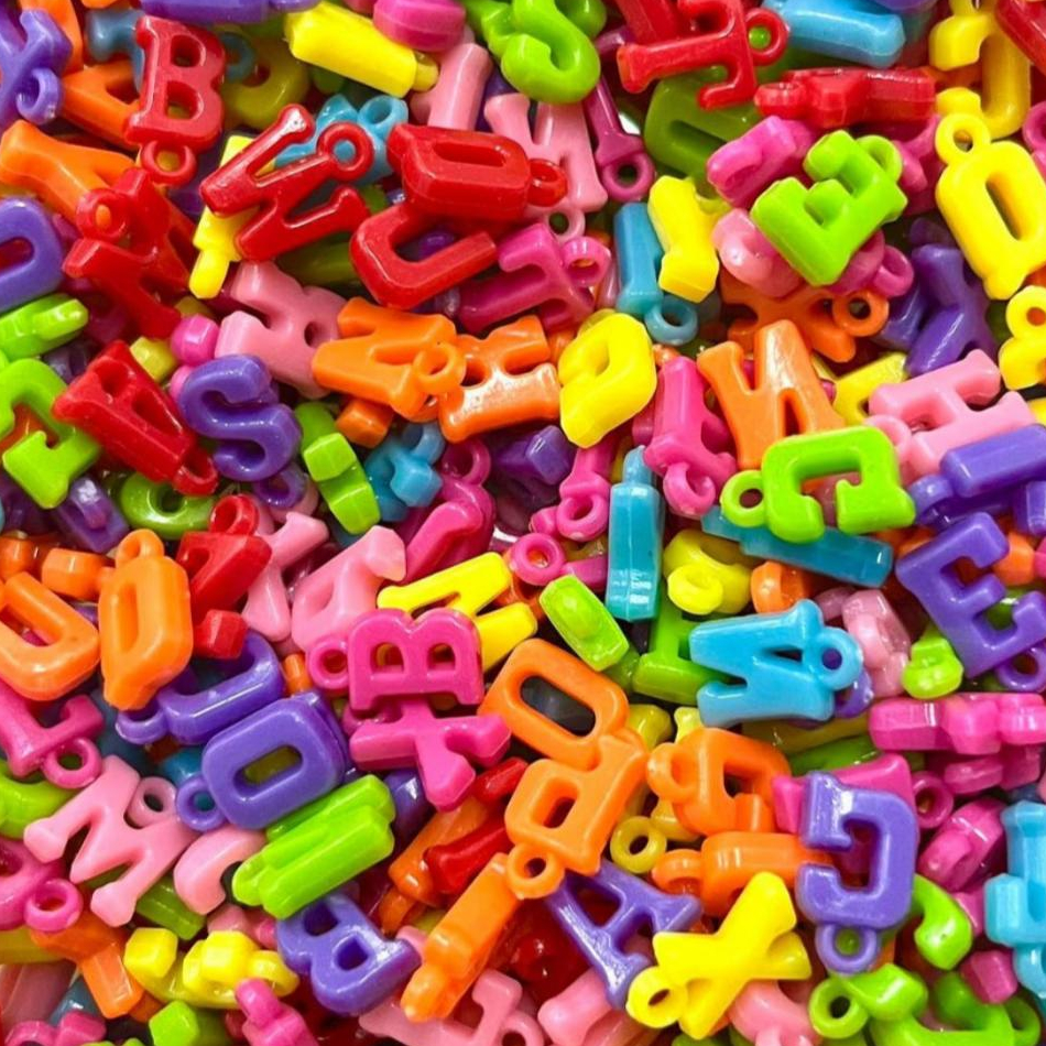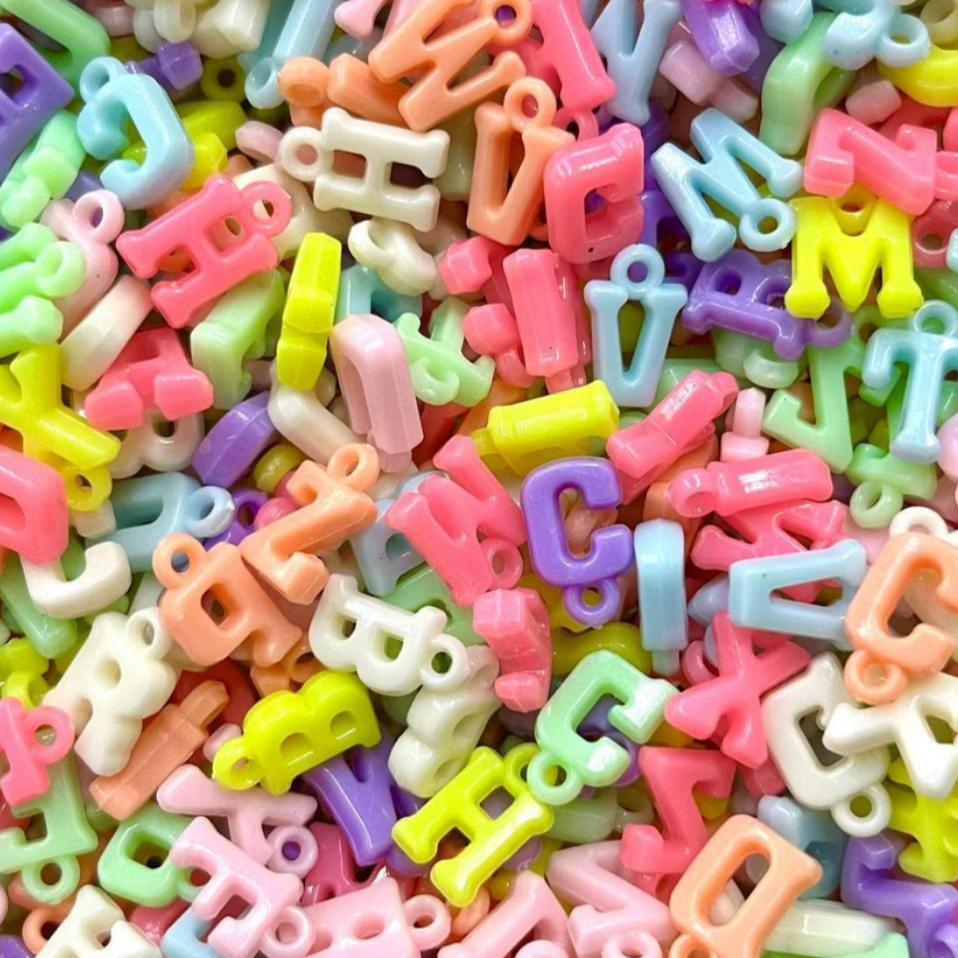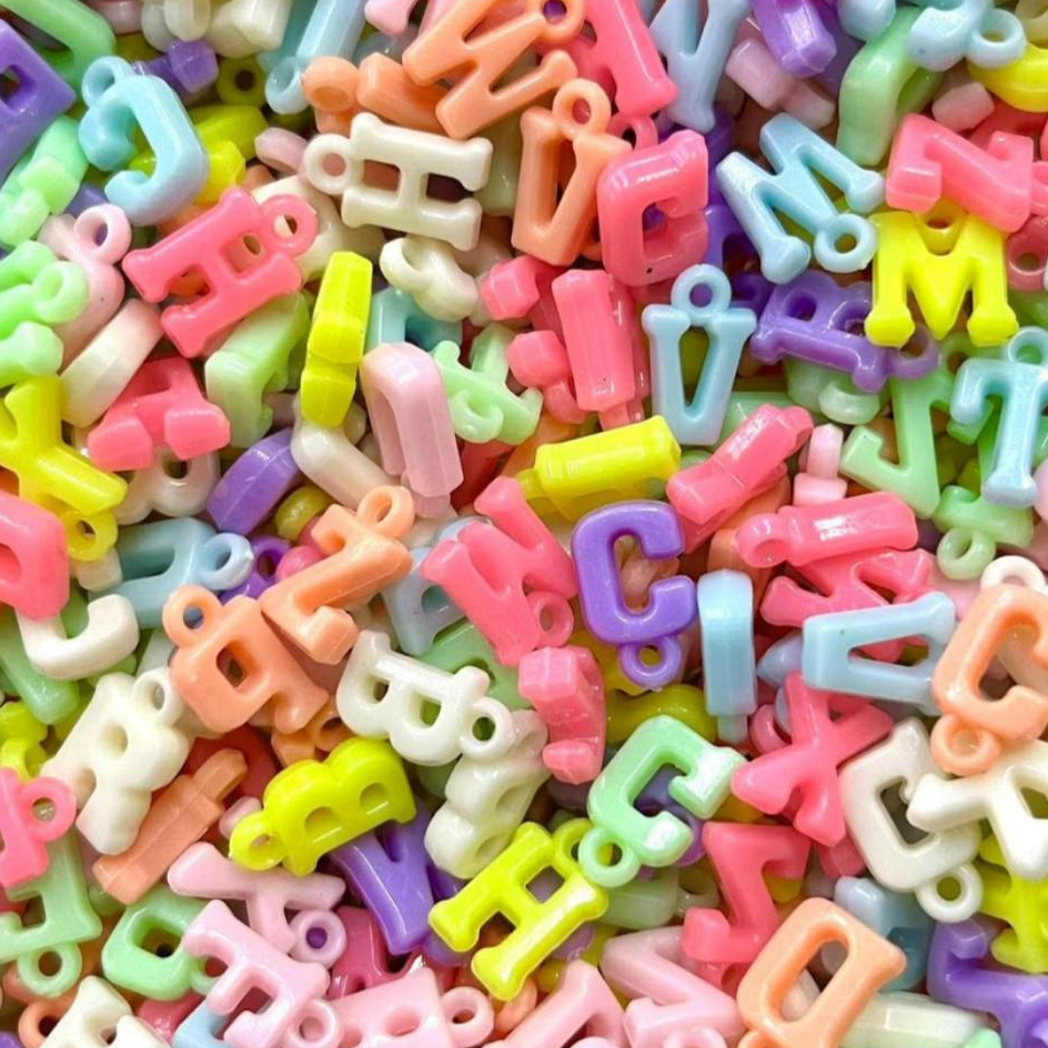 Pingente Letrinha Colorida Leitosa Passante 14x10mm P/Pulseira Colar