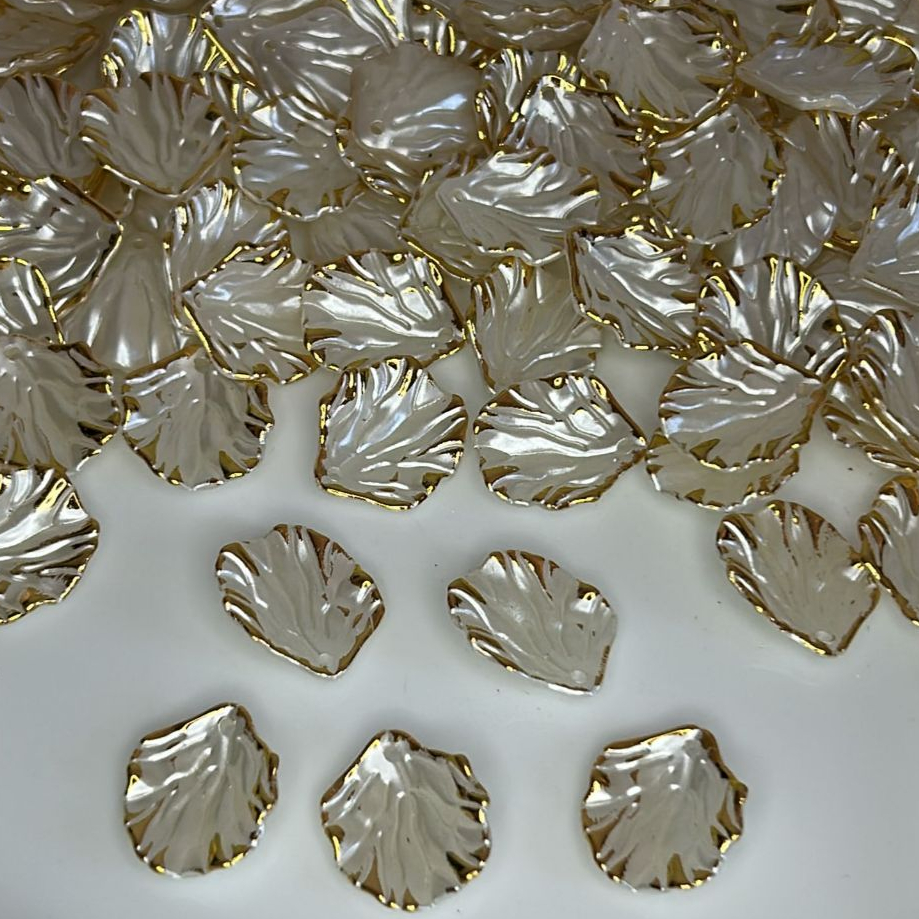 Pétala Com Friso Branco Dourado P/Colares Brinco Chaveiro la