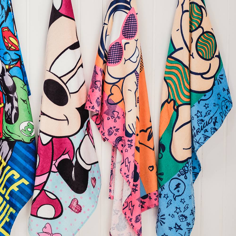 Toalha De Banho e Praia Infantil Gigante Estampada De Algodão
