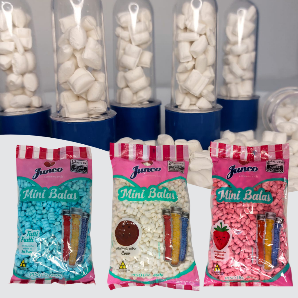 Mini Bala de Coco 400g Junco Vários Sabores Para Decoração Tubetes Latinhas