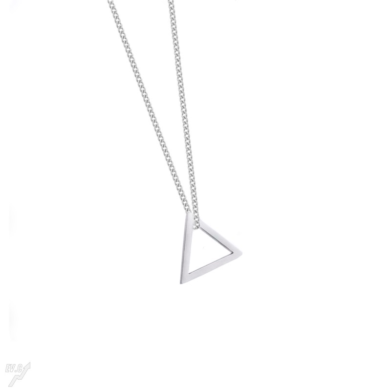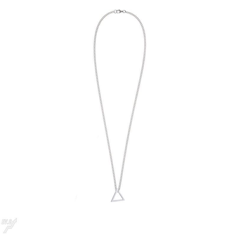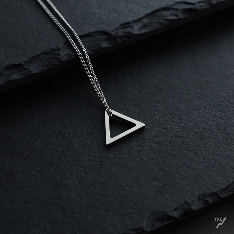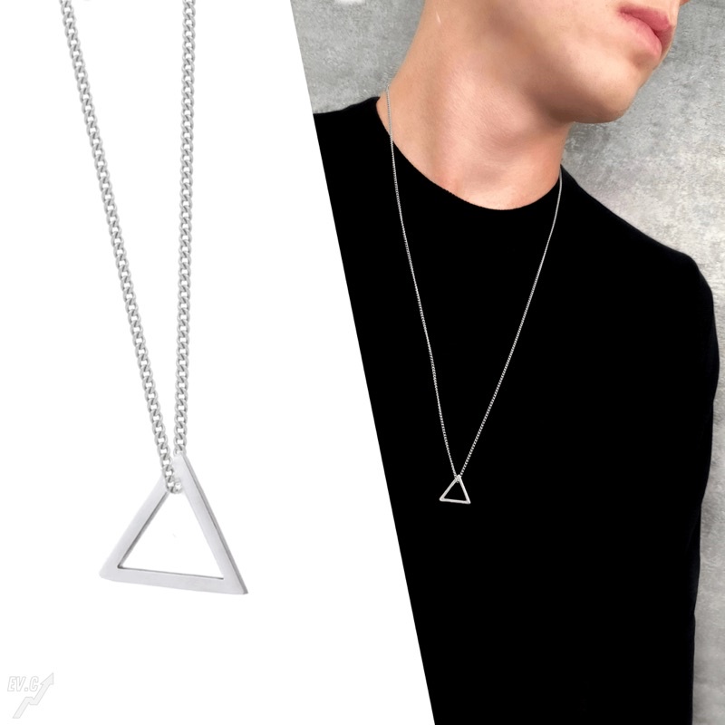Colar Cordão Masculino com Pingente Triangulo Correntinha Aço Inoxidável cor Prata Não fica Preto