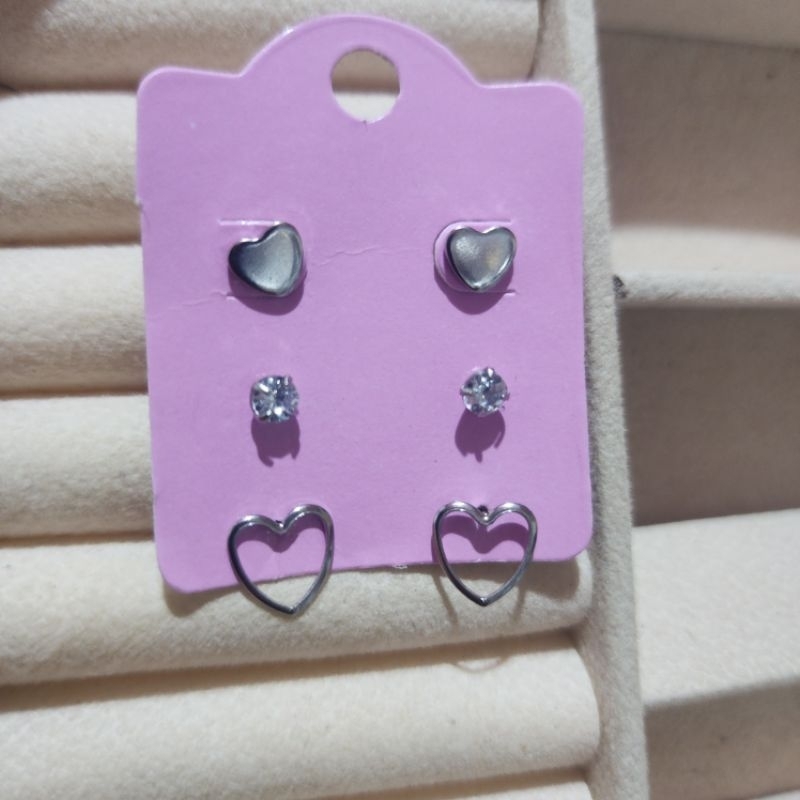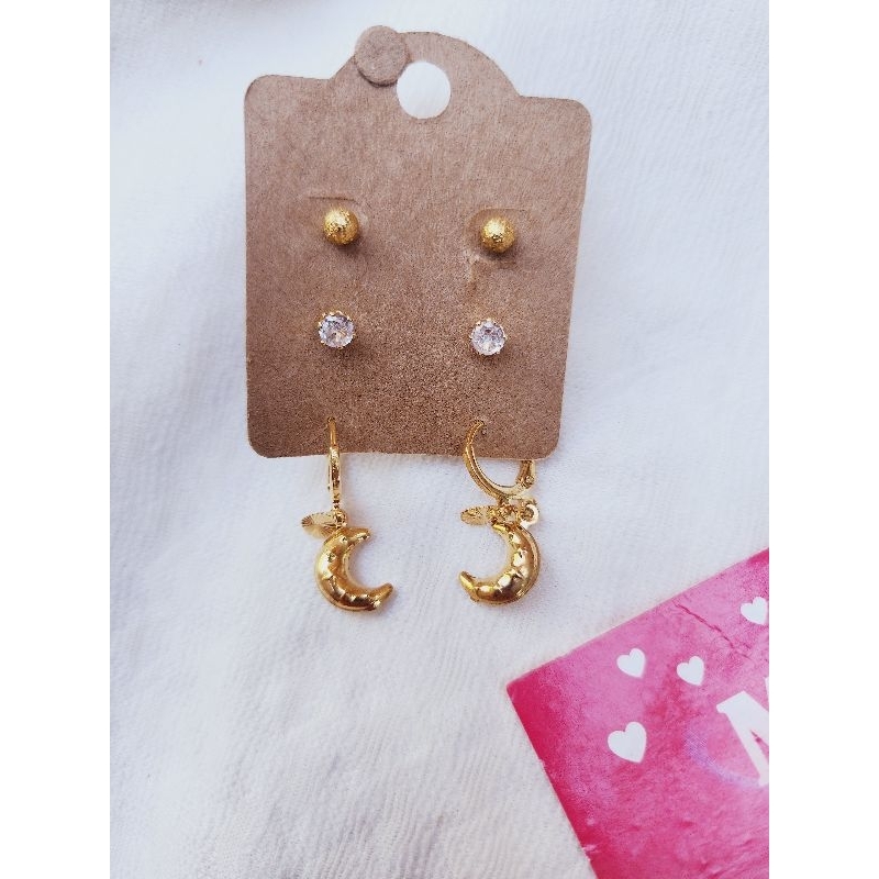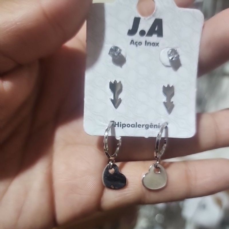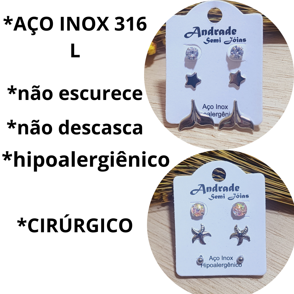 Trio de brincos Aço Inoxdável Cirúrgico Antialérgico Feminino Hipoalergênico Prata Bolinha Pérola Mar Coração Lua