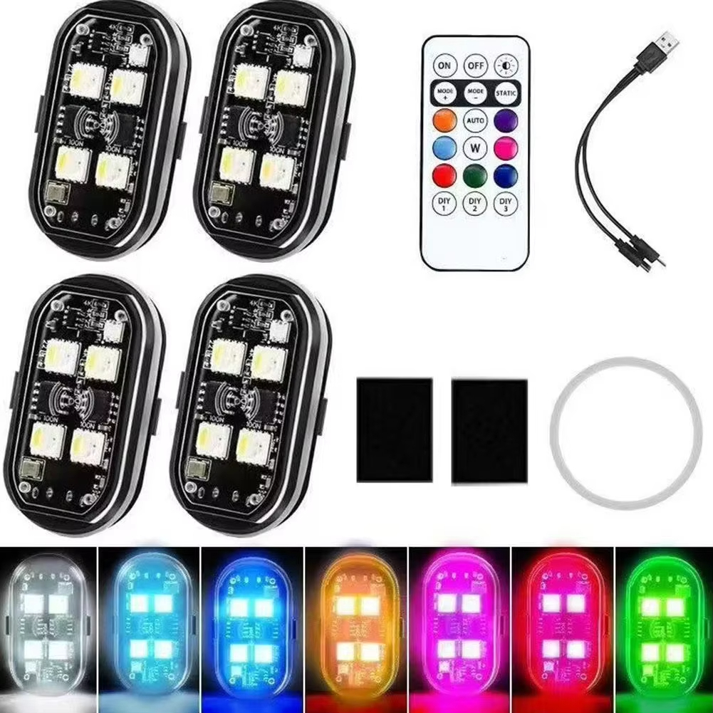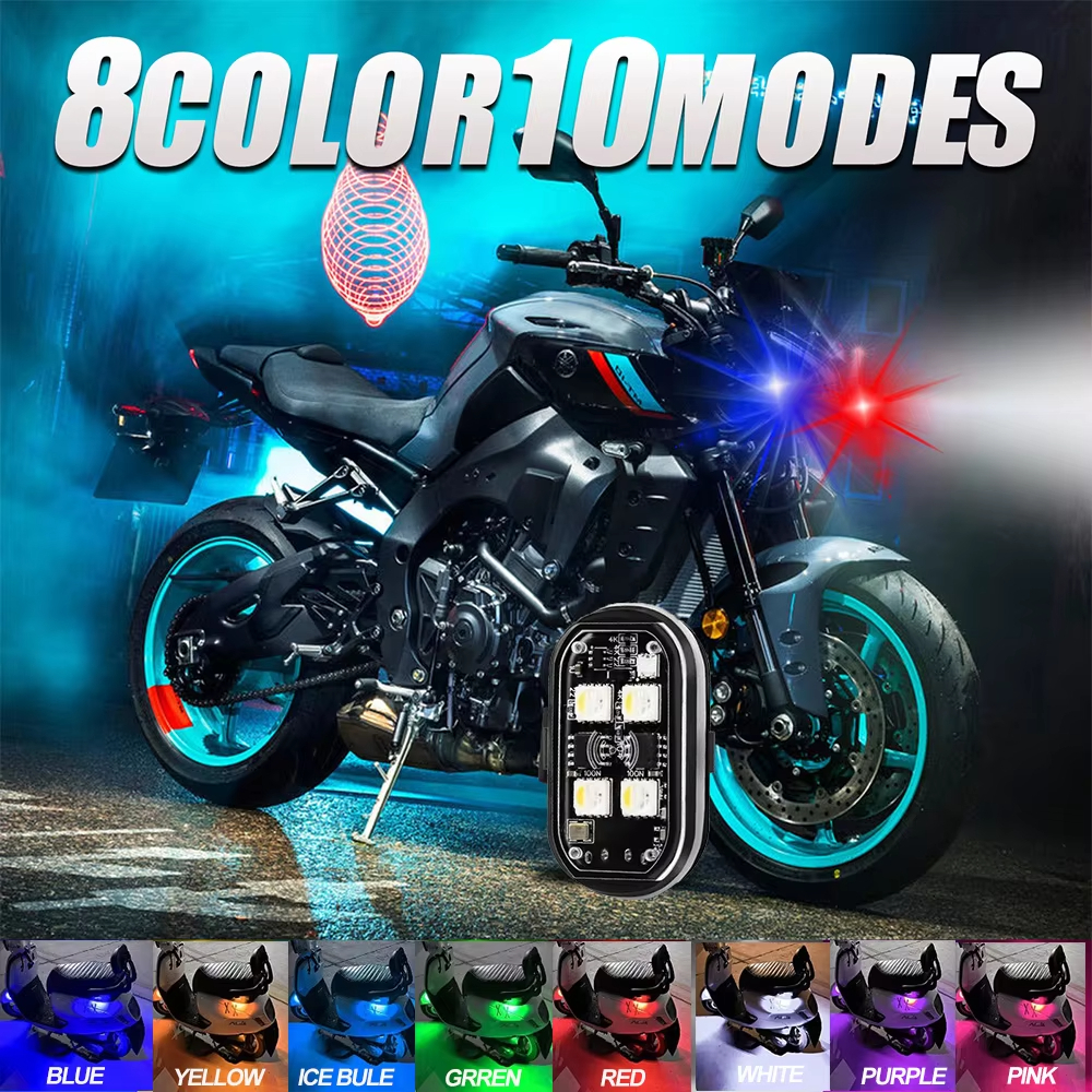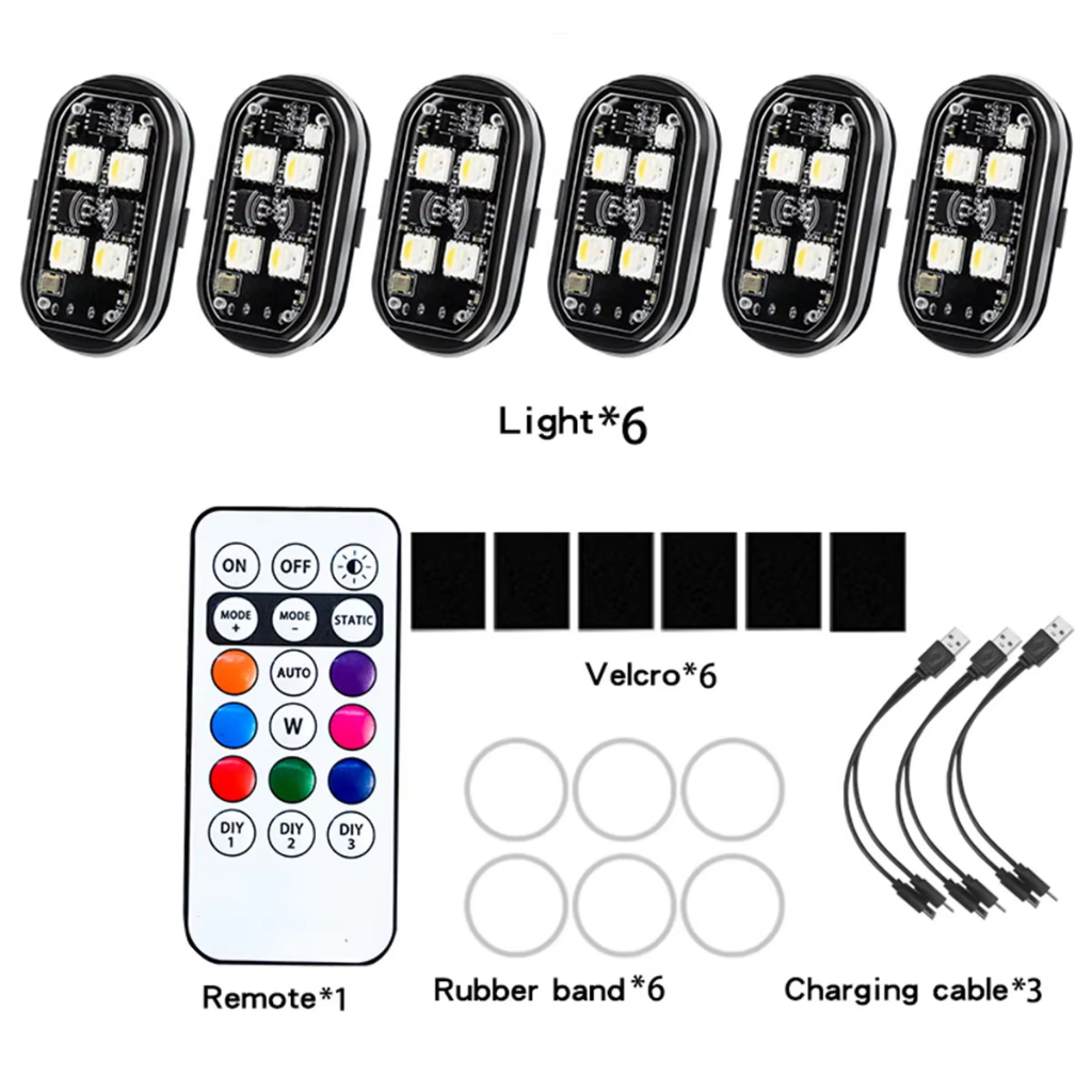 6 Pçs Conjunto De Luzes Piscantes Do Carro Sem Fio LED Estroboscópicas Para Motocicleta Oito Cores Piscando Anti-Colisão