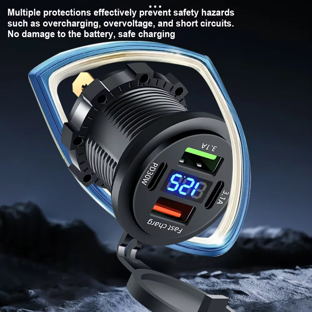 2025 Novo 4 Em 1 85W Carregador De Carro PD + QC3.0 Com LED Voltímetro Tomada Adaptador De Energia À Prova Dwaterproof Á