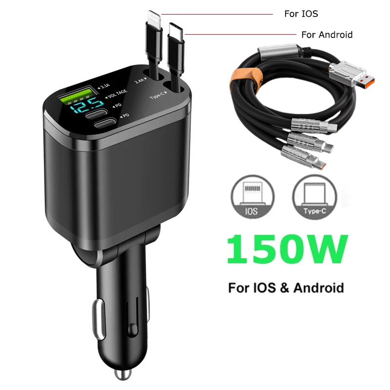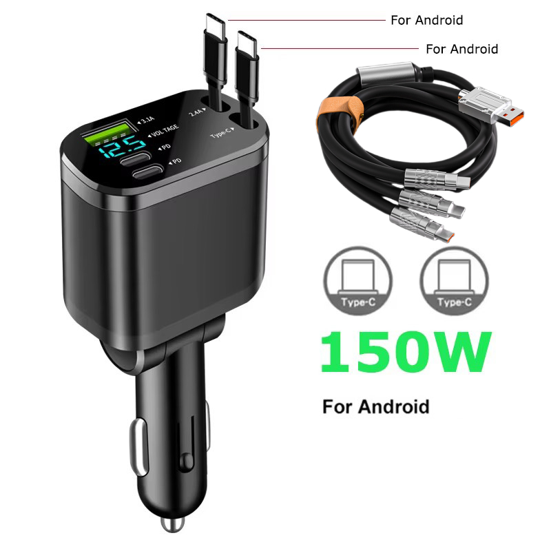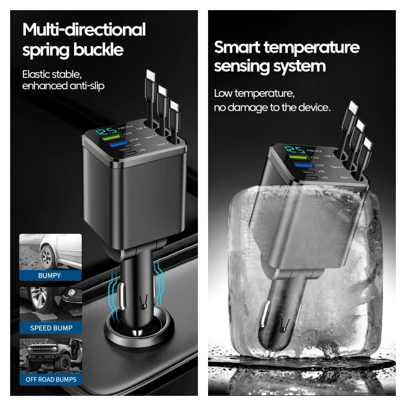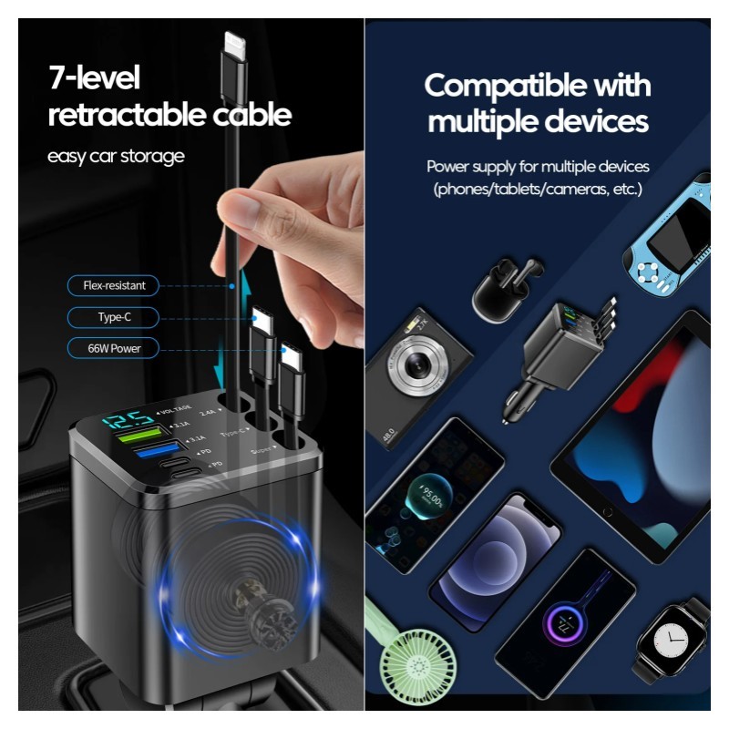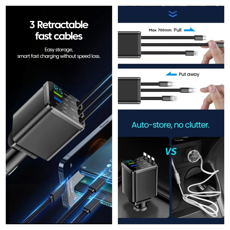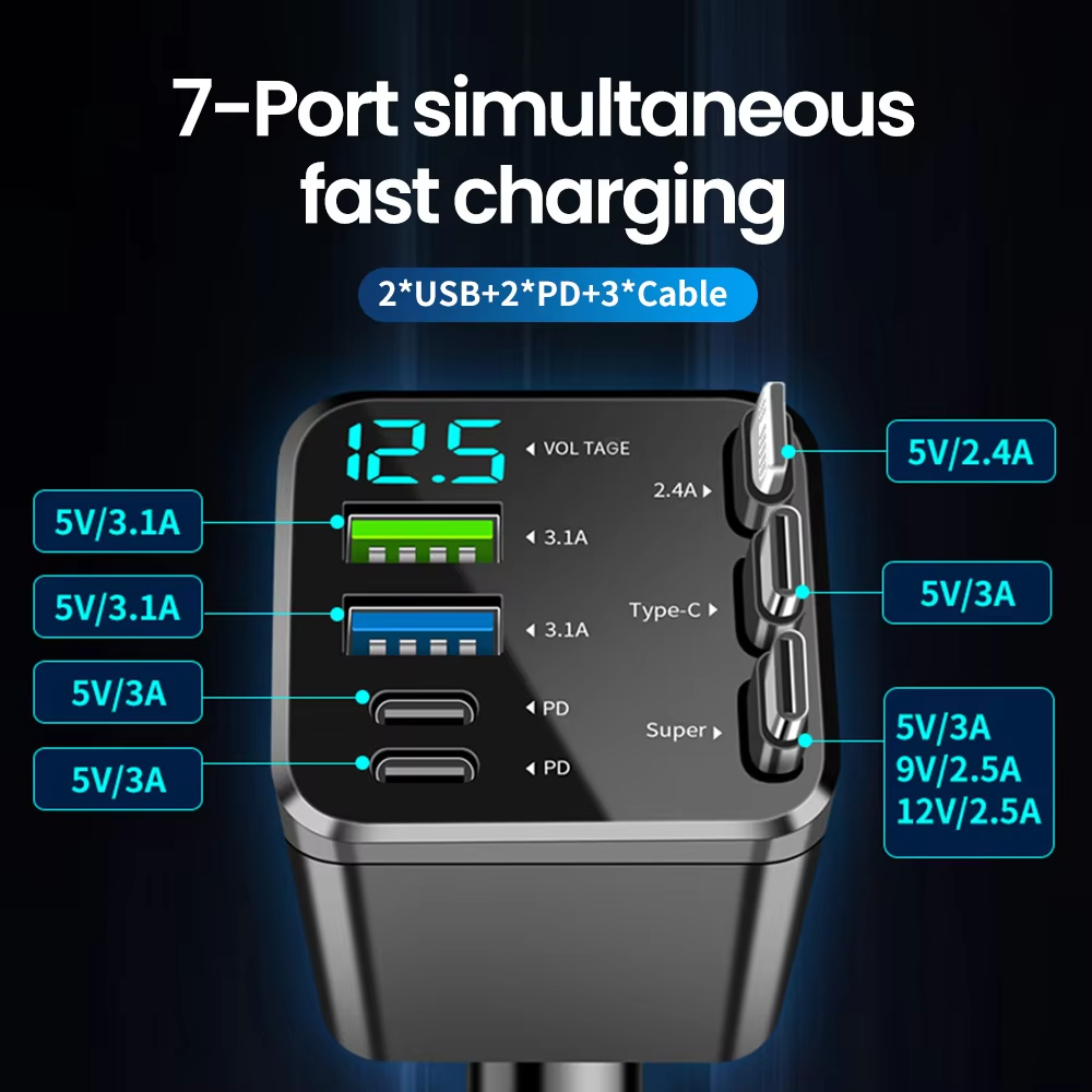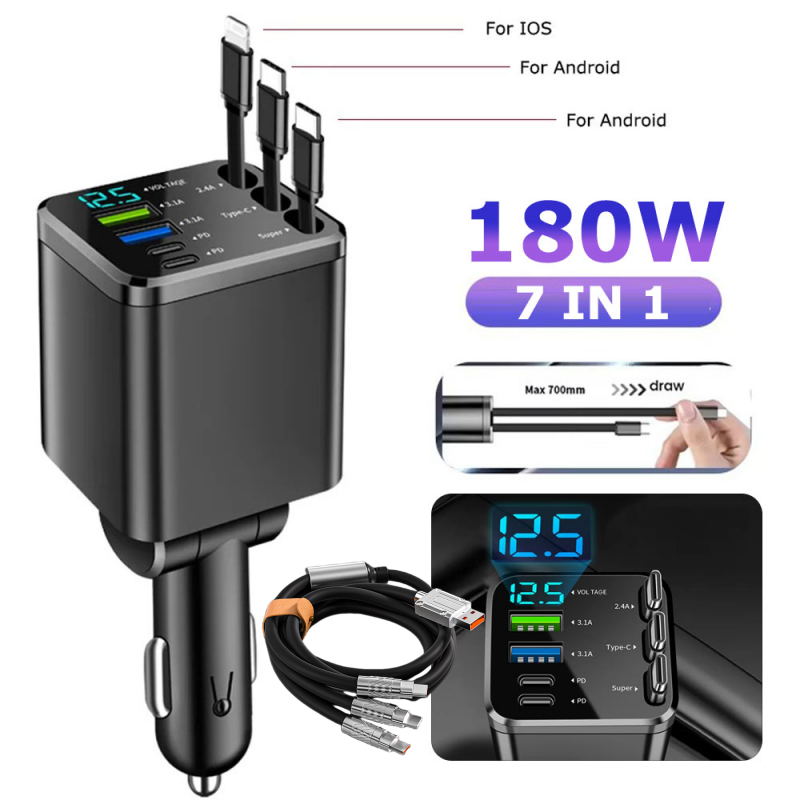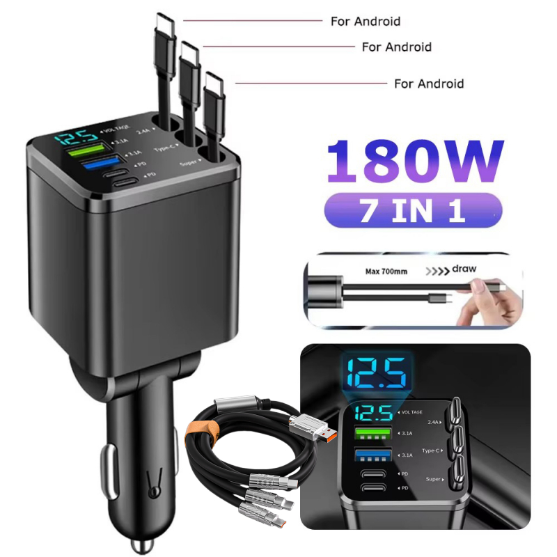 Carregador De Carro 7 Em 1 12/24 V Com Display De Tensão 180 W PD USB C Adaptador De Energia De Carregamento Super Rápid