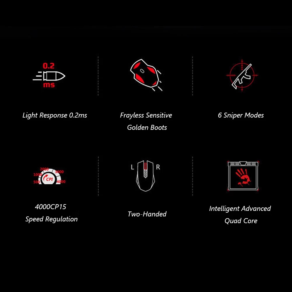 Rato De Jogos A4Tech Bloody A70 A90 A91 LK Micro-Moção Óptica 4000dpi Com Fio