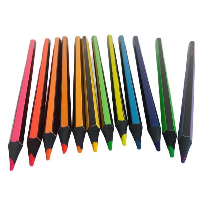 Lápis de Cor Neon ou Pastel Rebecca Bonbon ou Luluca 12 Cores Vibrantes Escolar