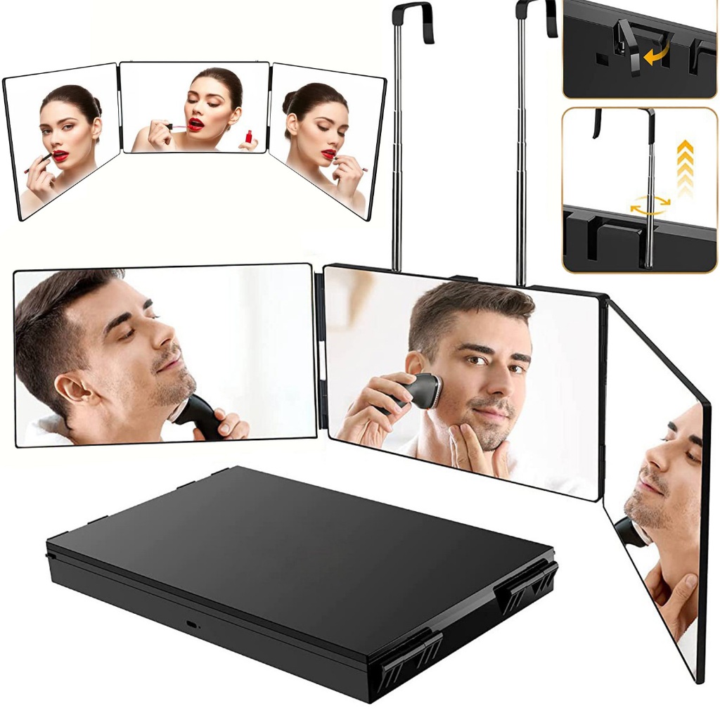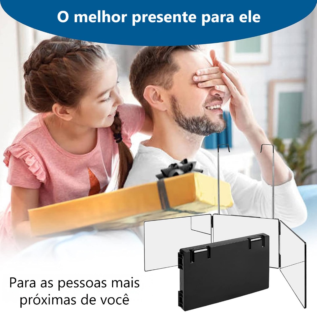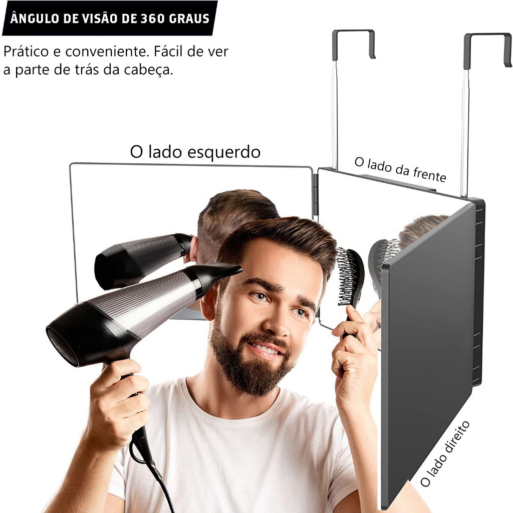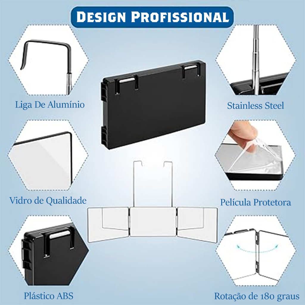 Espelho Triplo 3 Vias para Corte de Cabelo 360° Portátil | Barbear DIY para Casa Banheiro Viagem