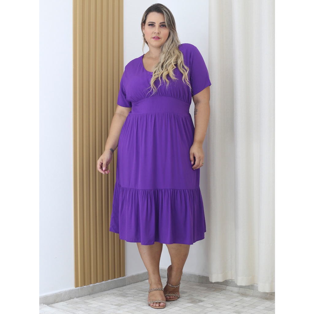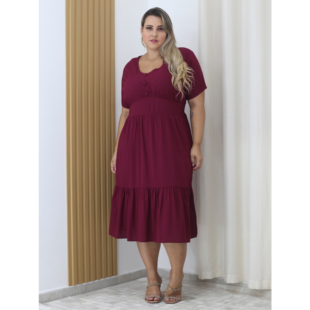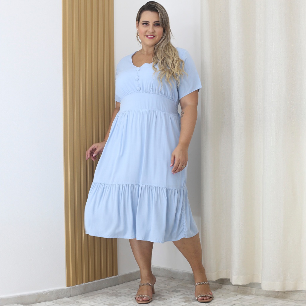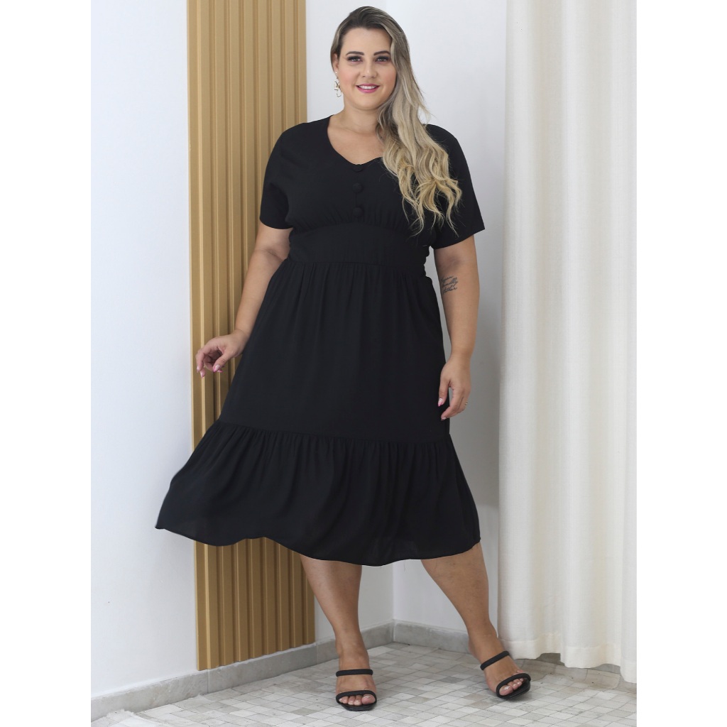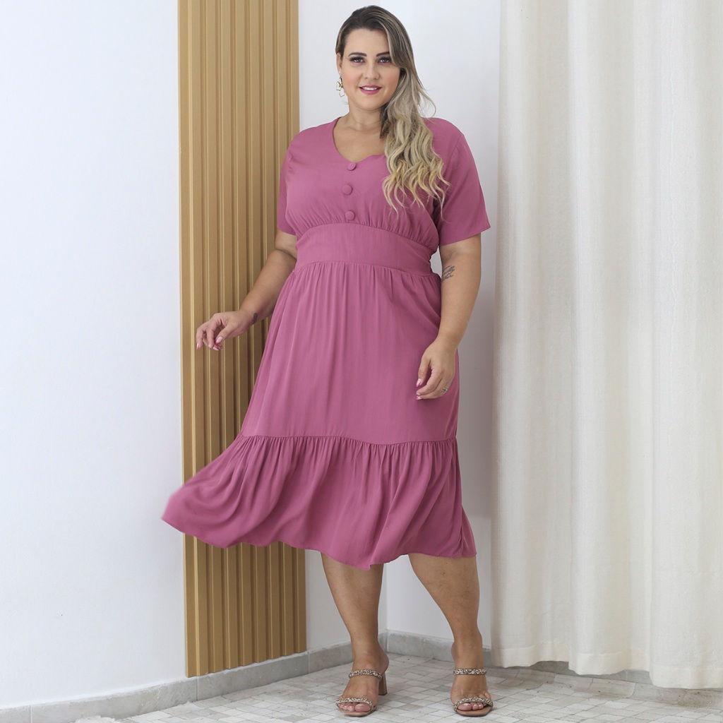 Vestido Viscolinho Midi Plus Size Com Botão Decote V