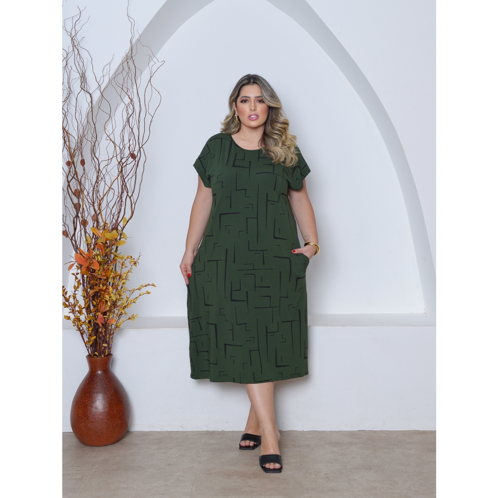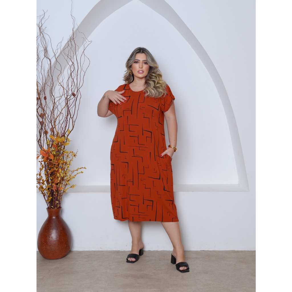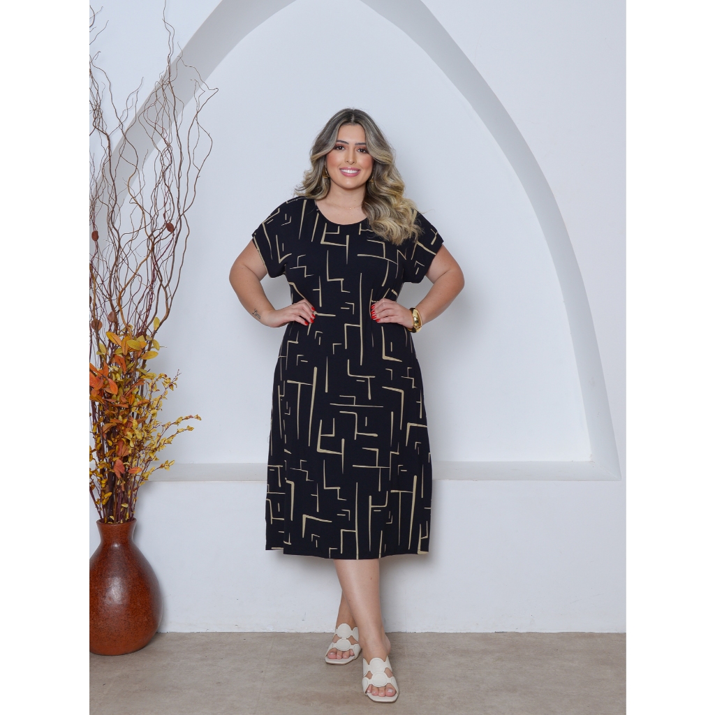 Vestido Estampado Malha Midi Plus Size