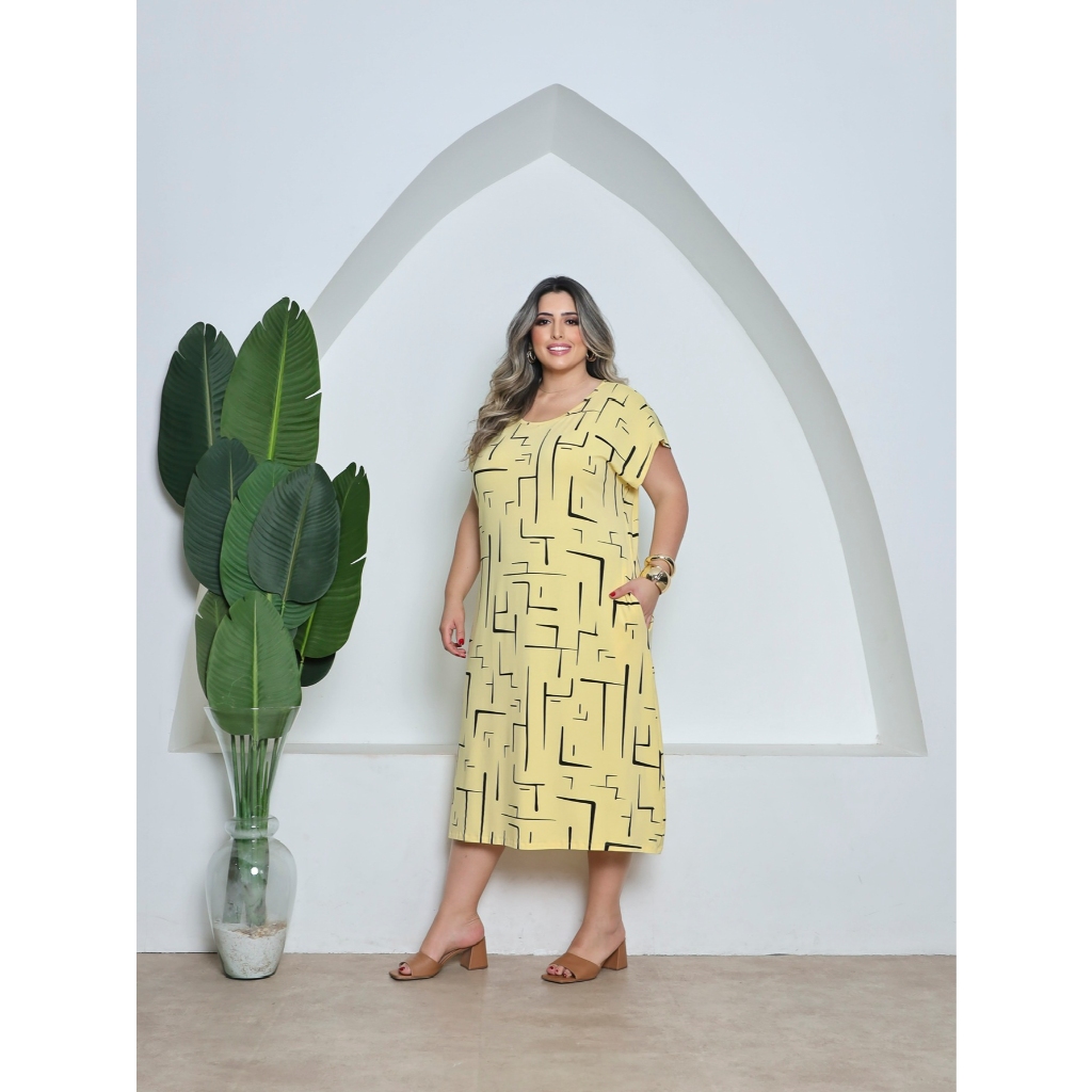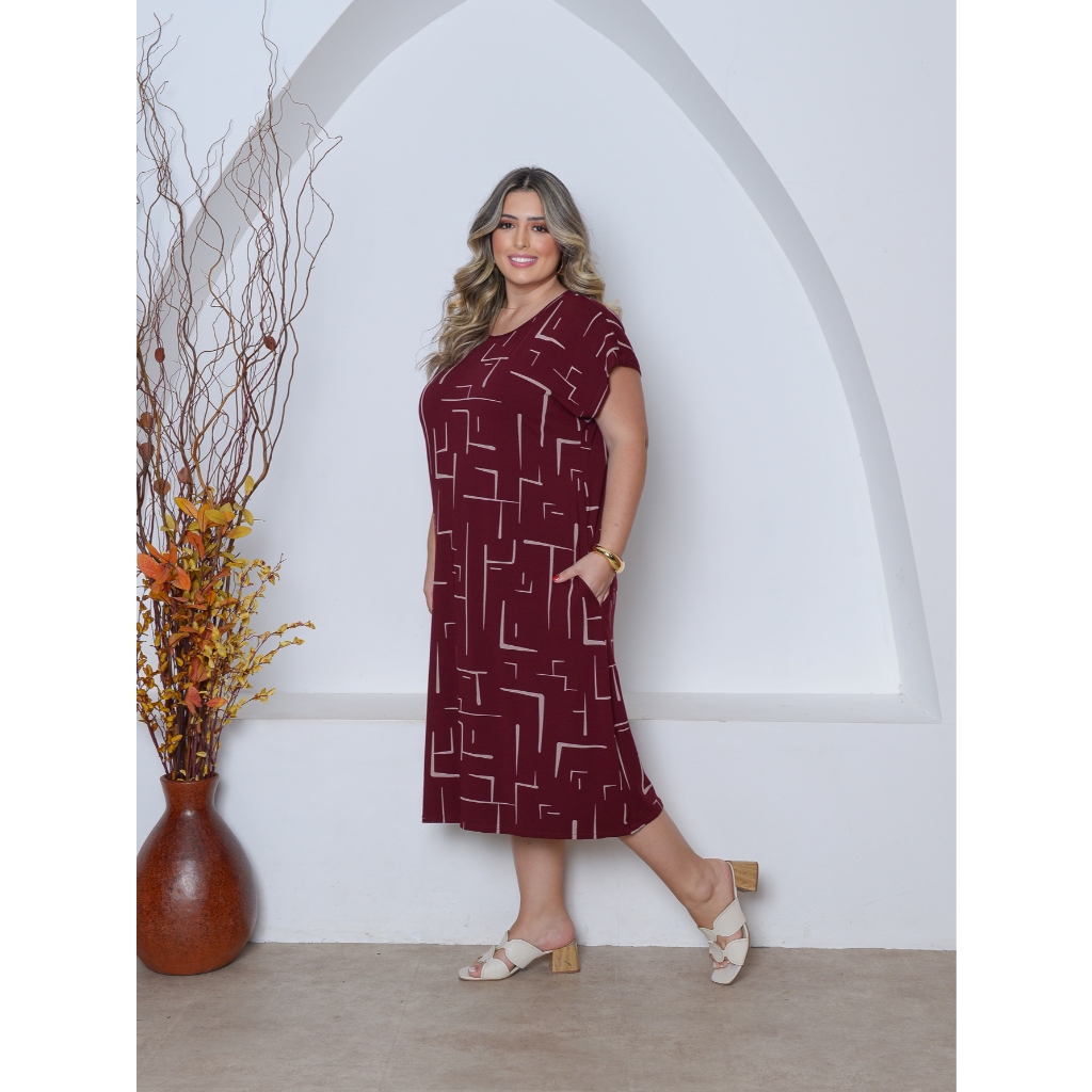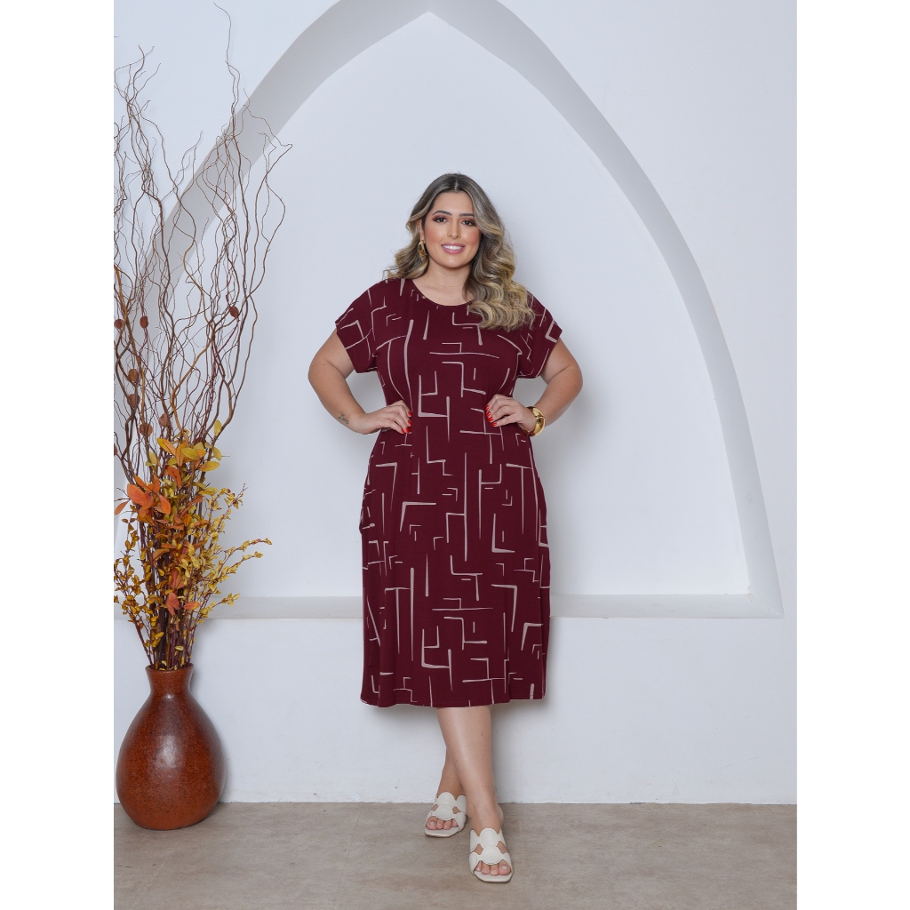 Vestido Estampado Malha Midi Plus Size