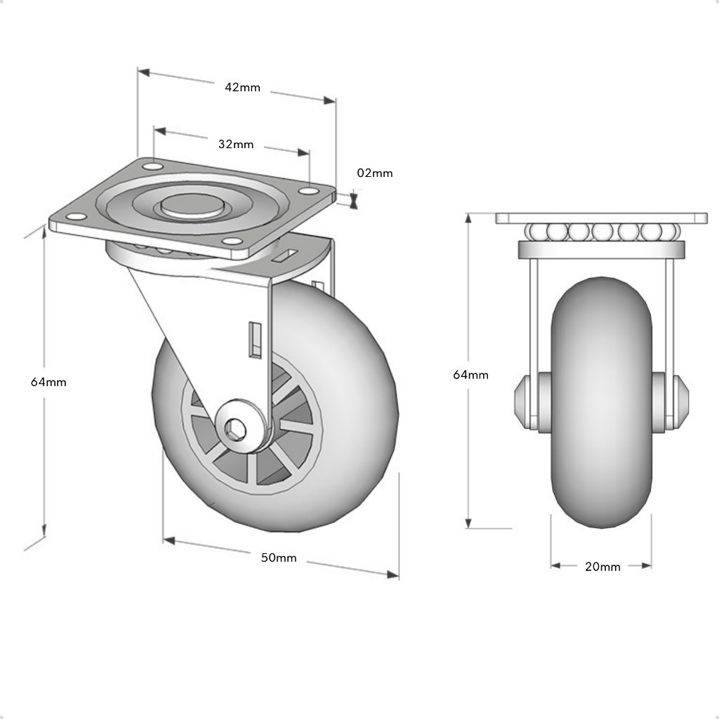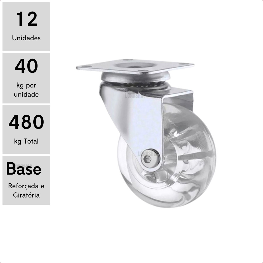 Kit 12 Rodizio Giratório 50mm Rodinha Silicone Gel Sem Trava