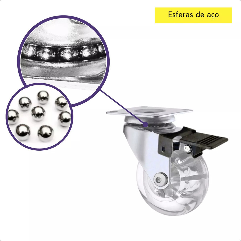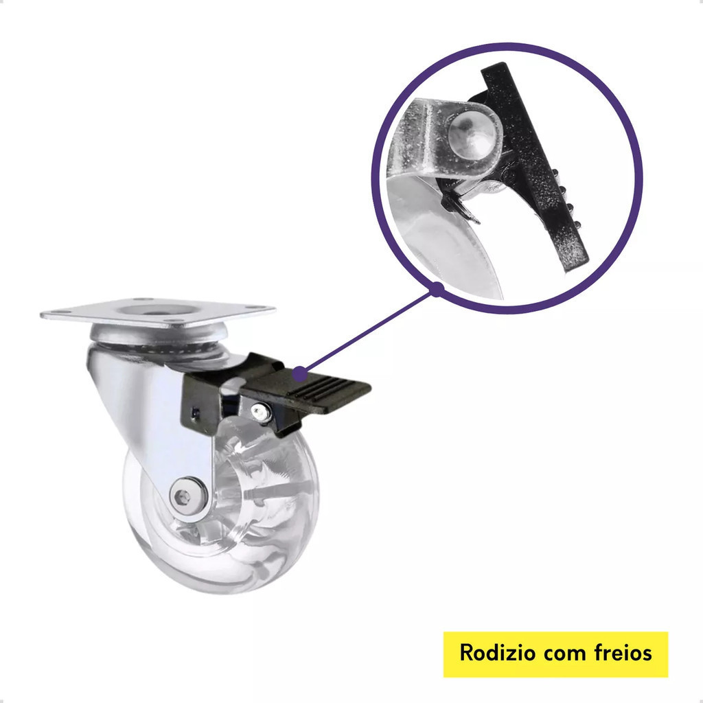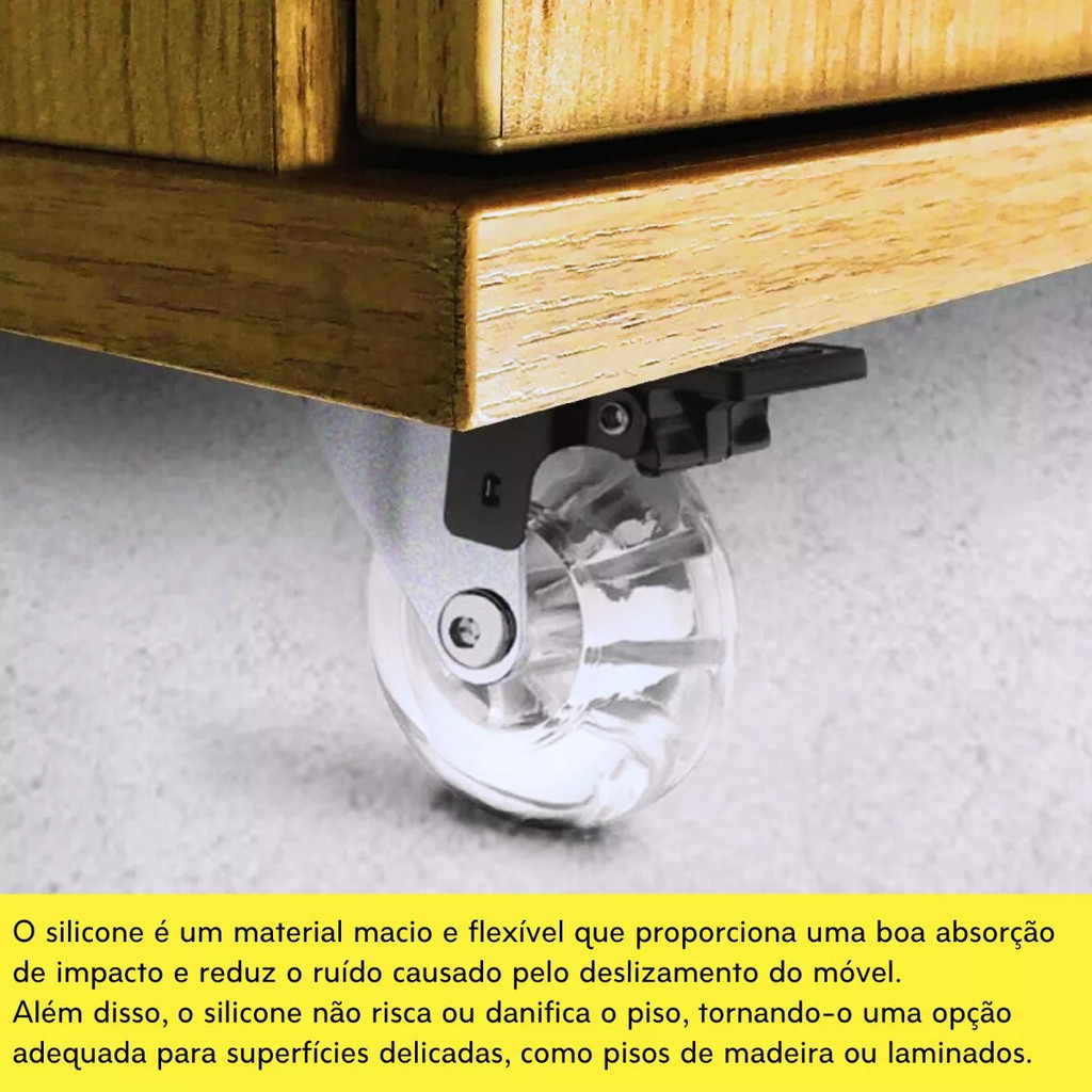 Rodinha 50mm Kit 4 Rodizio Silicone Giratório Gel Ante Risco Com Freio e Sem Freio