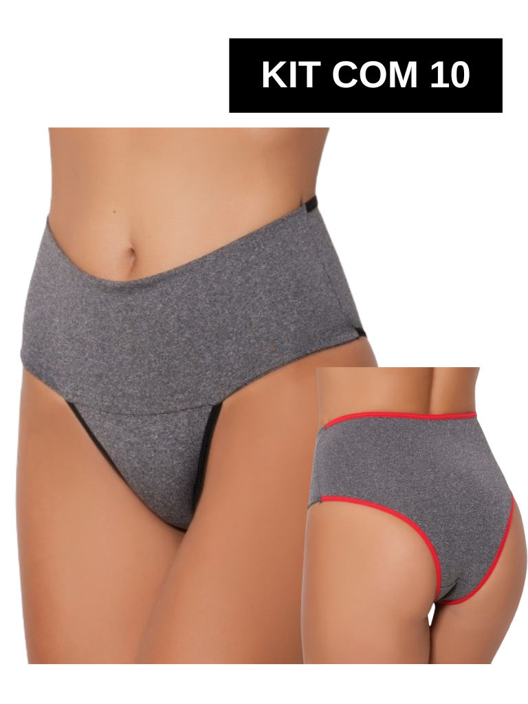 Kit com 10 Calcinhas Fitness Cintura Alta Modeladora cós alto Segura Barriga