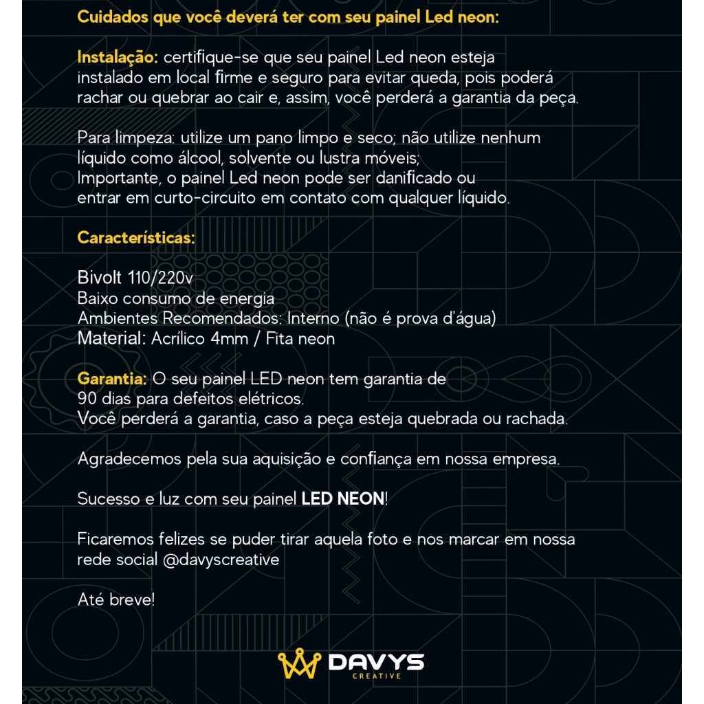 Painel Neon LED Aberto em Acrílico Cristal 4mm - Decoração de lojas e outros