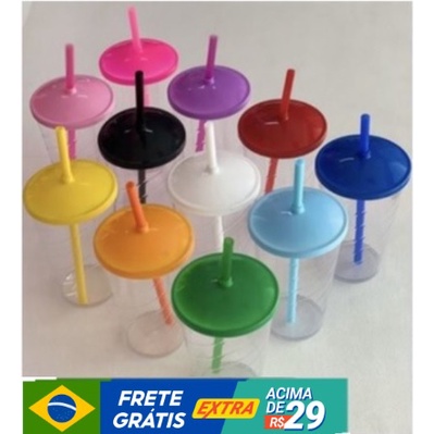 10 Copos Acrílico Twister 500ml C/ Tampa e Canudo Coloridos 10 Unidades