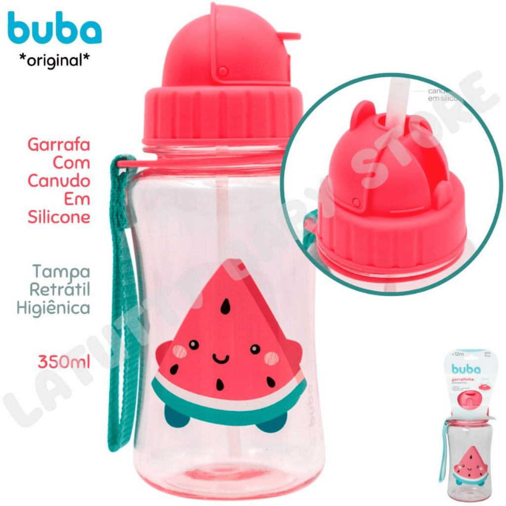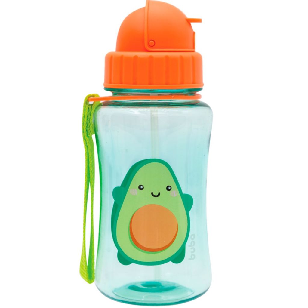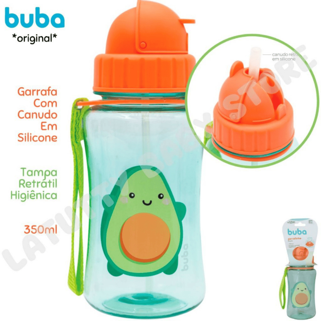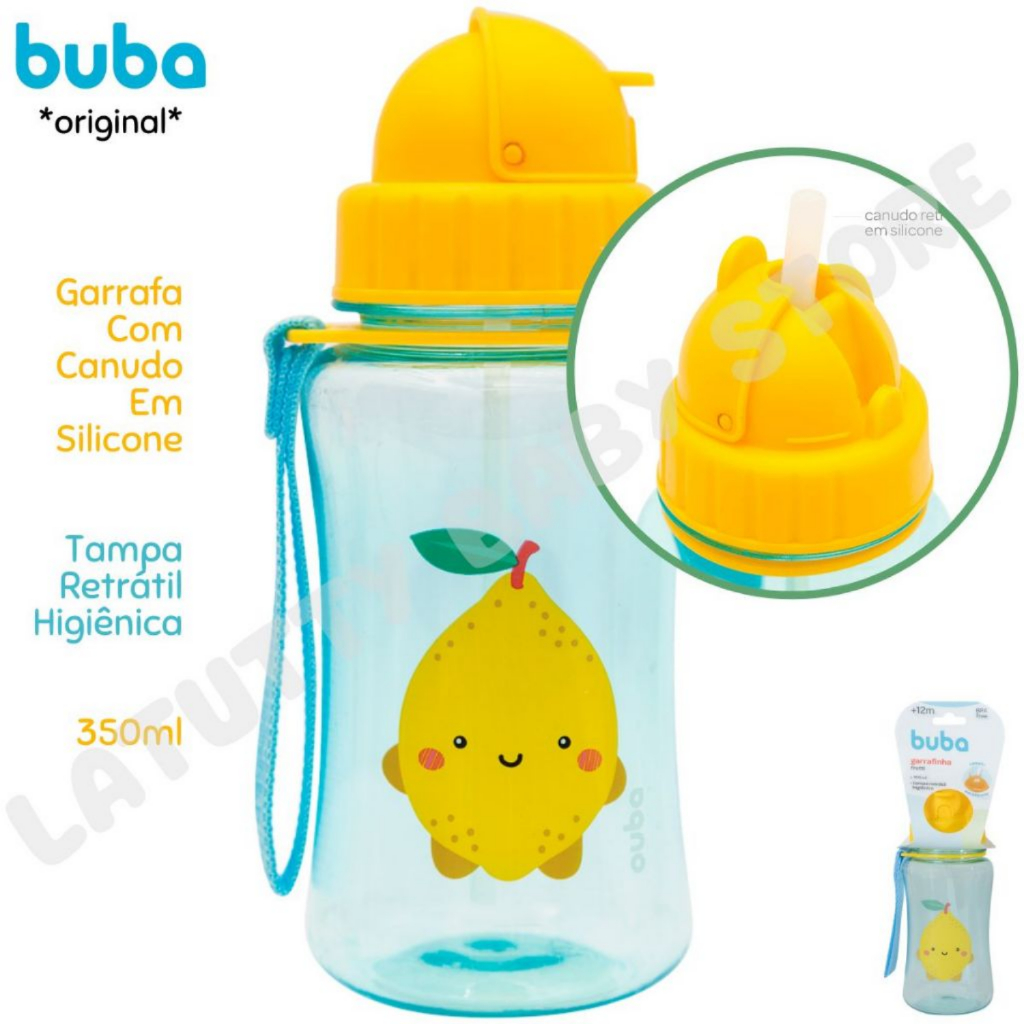 Garrafinha Infantil com Canudo Buba Tampa Higiênica Alça Canudo Silicone 350 ml
