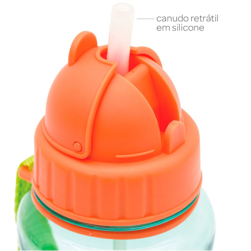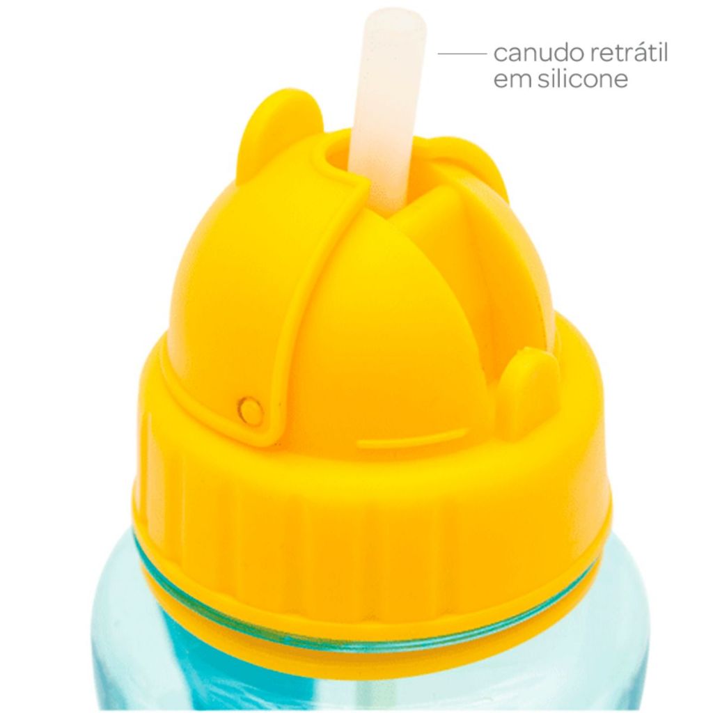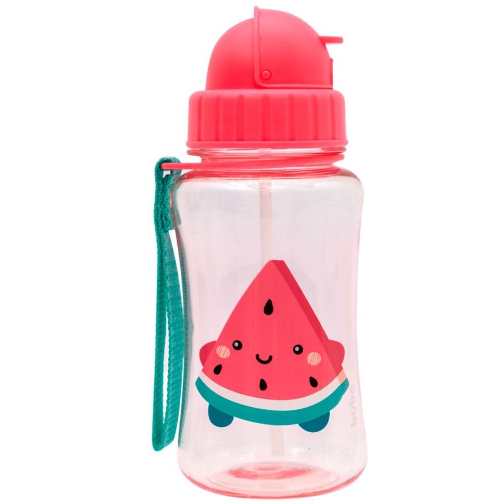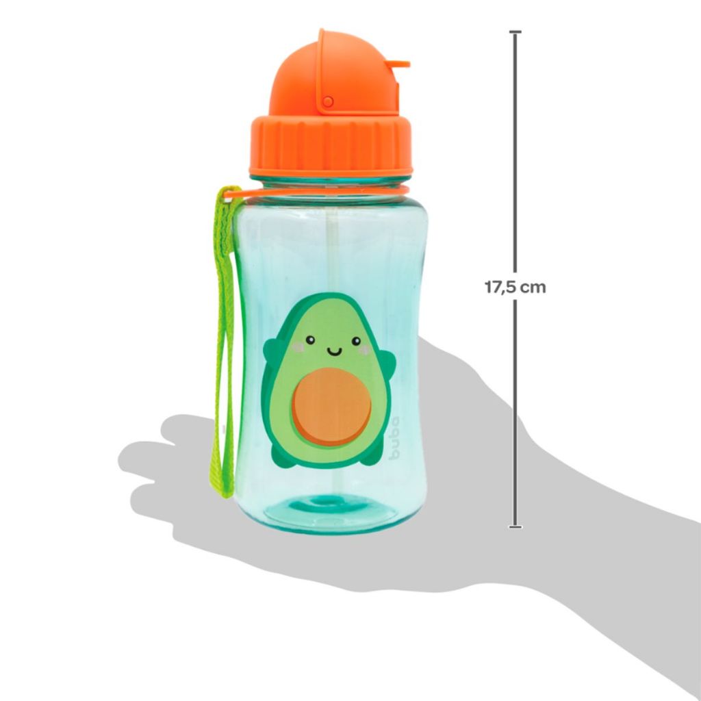 Garrafinha Infantil com Canudo Buba Tampa Higiênica Alça Canudo Silicone 350 ml