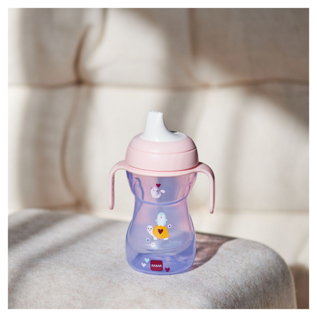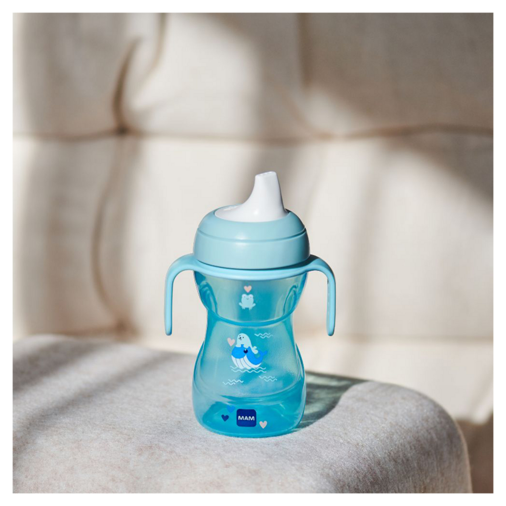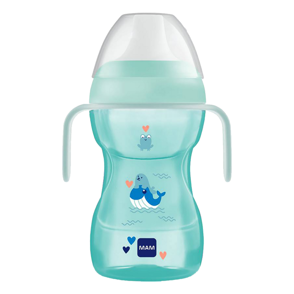 Copo de Transição MAM 270 ml Fun To Drink Original Antivazamento Tampa Alça Removível