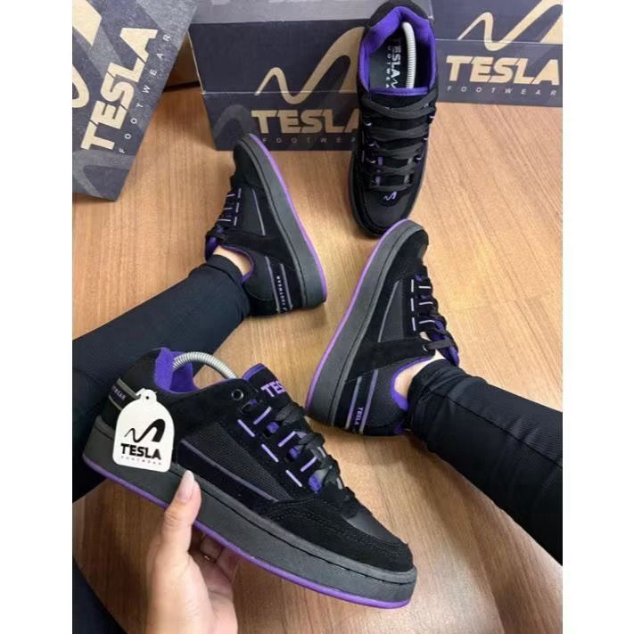 Tenis Tesla Coil Lançamento Preto e Roxo Masculino e Feminino