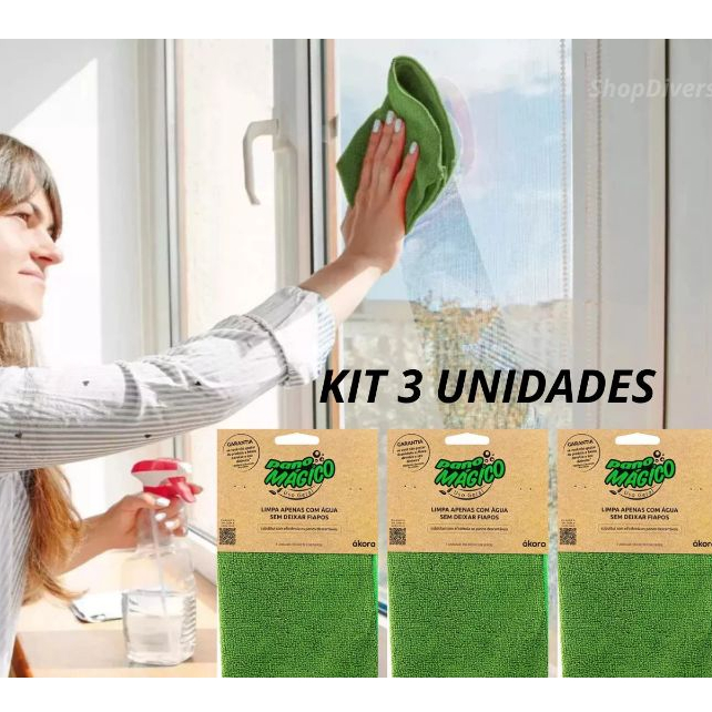 kit 3 Unidades Pano Magico Uso Geral Limpa Todo Tipo de Superfície Apenas Com Agua Sem Fiapos