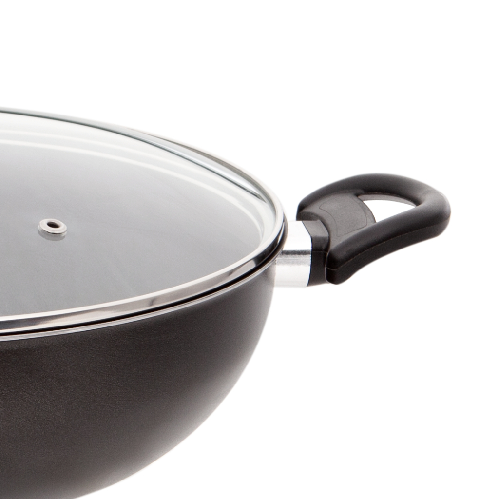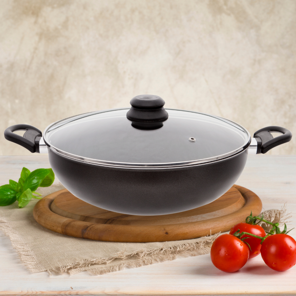 Panela Wok Antiaderente Frigideira Grande Caçarola Com Tampa de Vidro