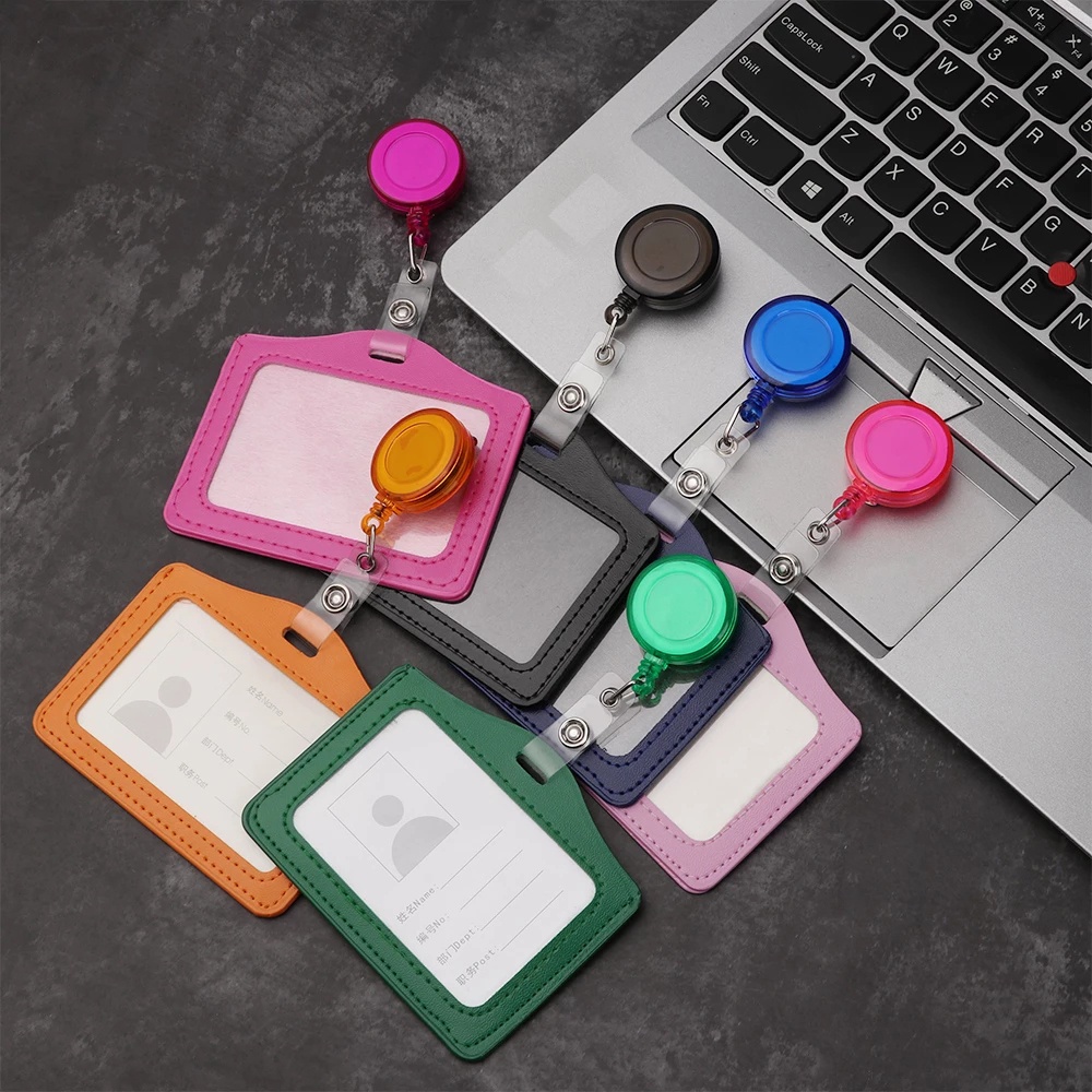 FUHENG Grampo/Porta-Crachá De Couro PU Com Cores Pastéis Estilo Horizontal Para Enfermeira/Médico/Multicolorido