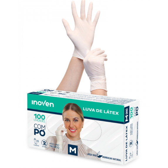 Luva Latéx Descartável Profissional C/ Pó Caixa C/ 100Un Tam PP, P, M, G
