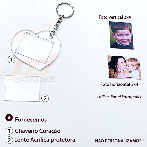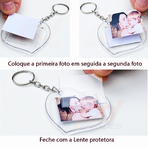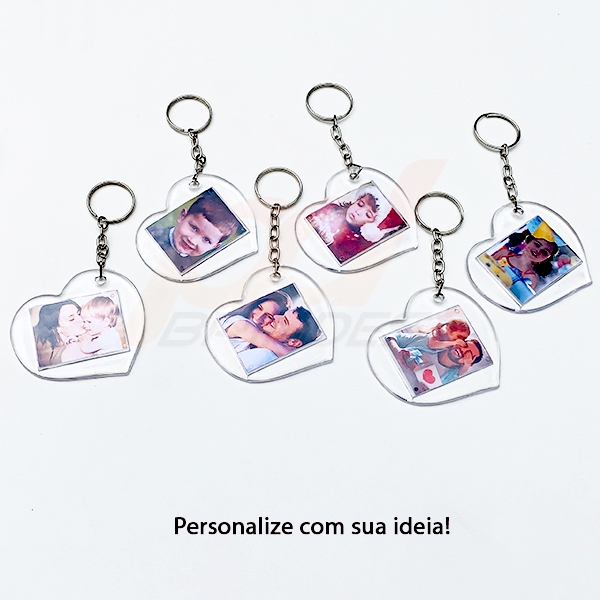Chaveiro Acrílico Coração - Para Foto 3x4 - 50 Unidades