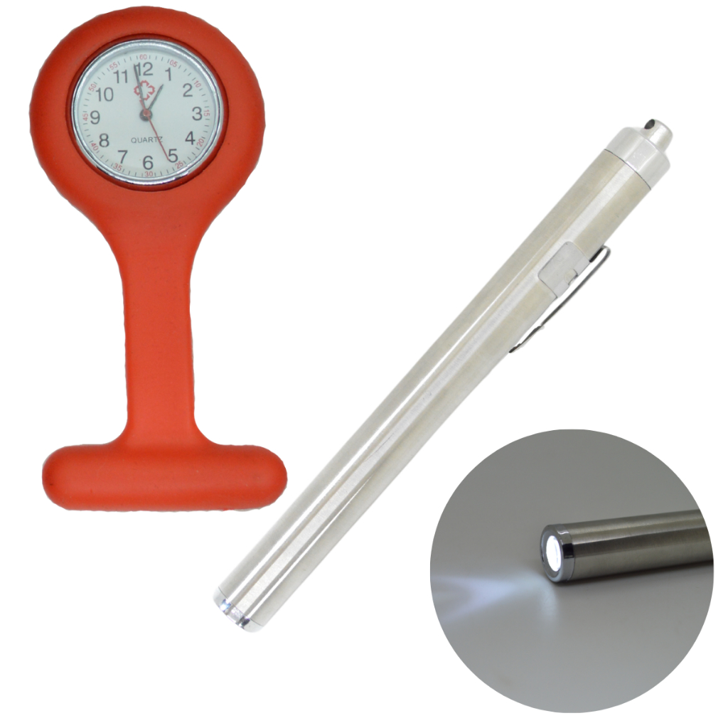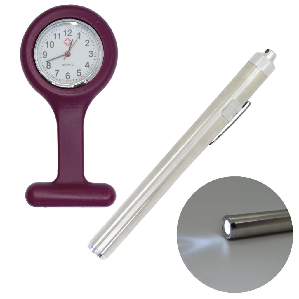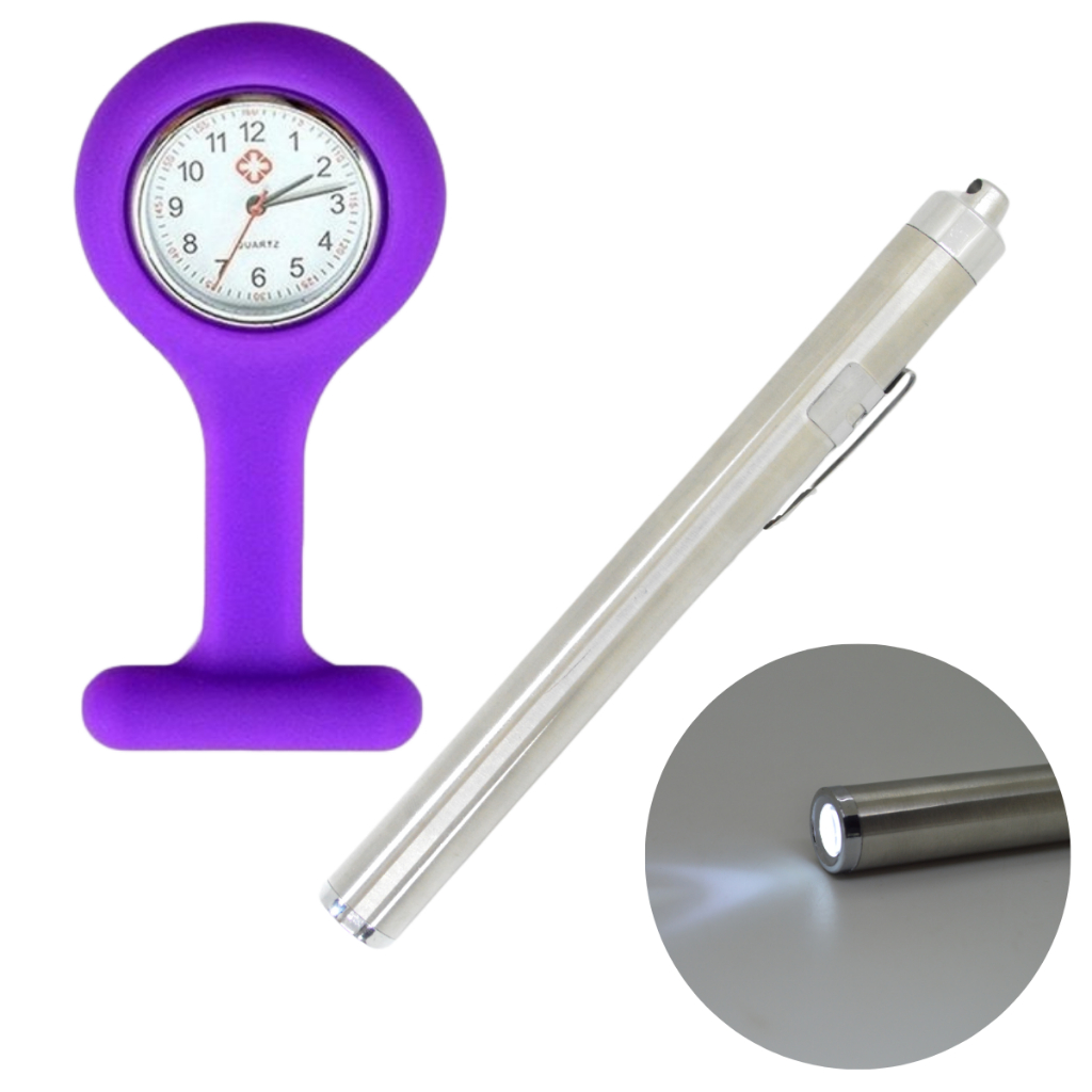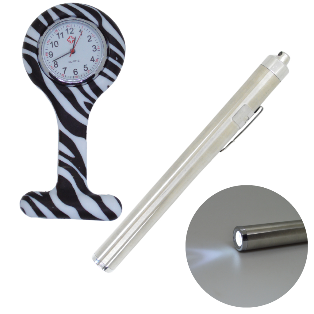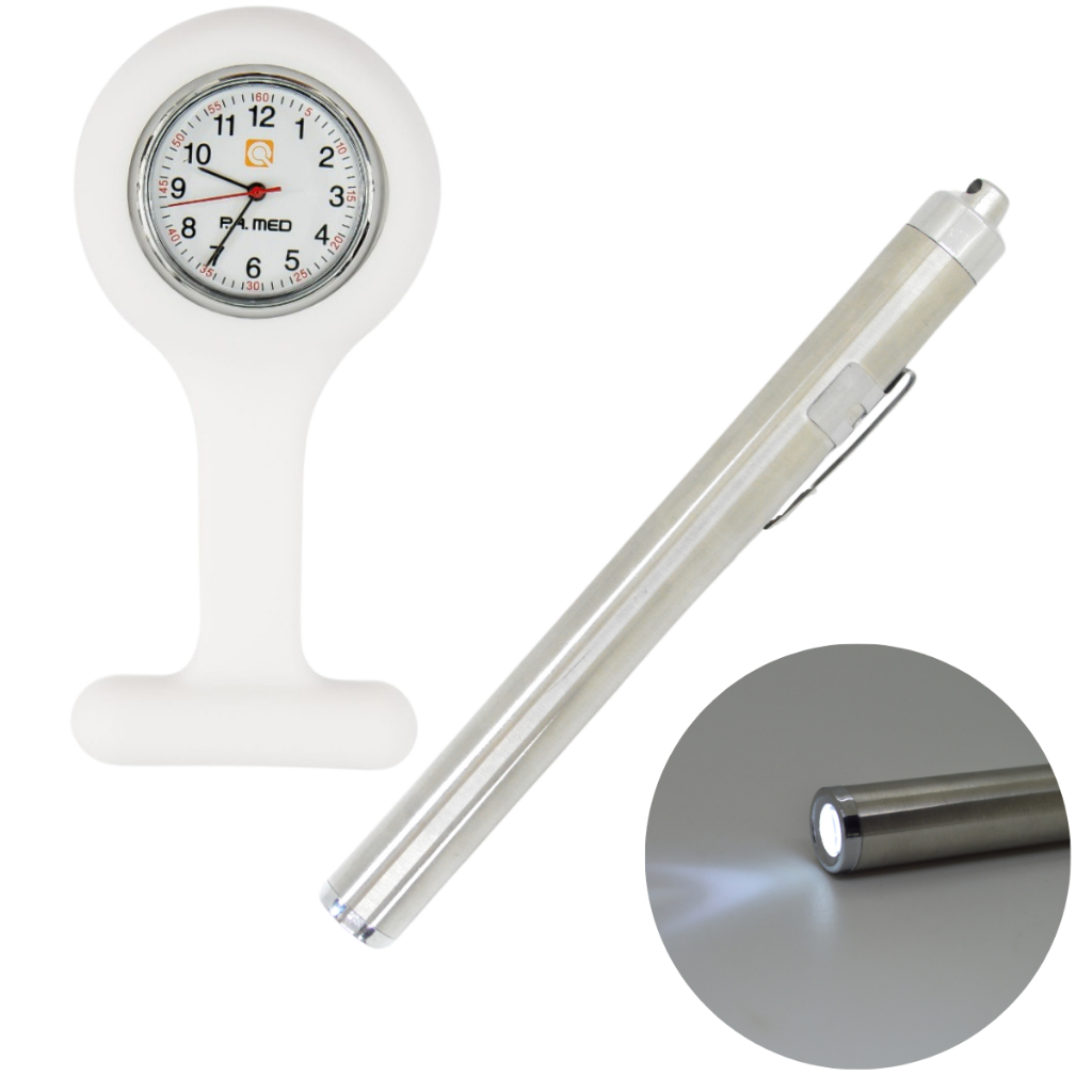 Kit Relogio Lapela Bolso Lanterna Clinica Medica Inox