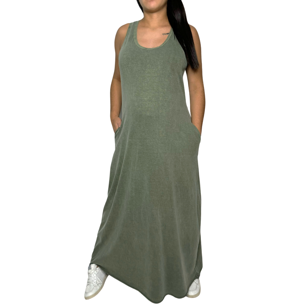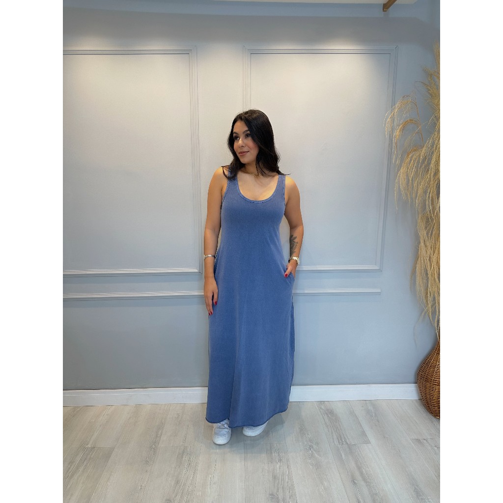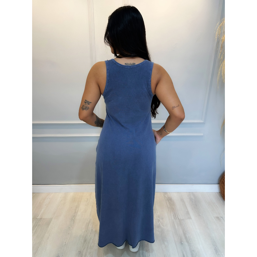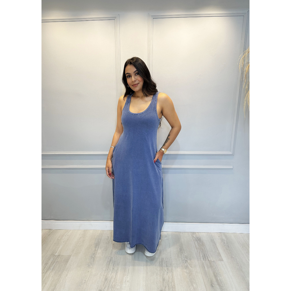 Vestido Longo Estonado com bolso