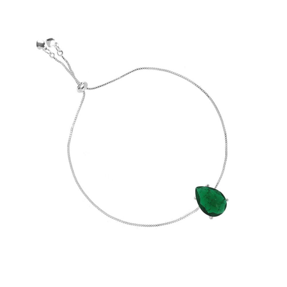 Pulseira Madrinha Gota Verde Esmeralda Folheado Prata