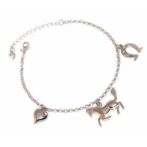 Pulseira Aço Pingente Folheado Níquel Country Cavalo Fazenda