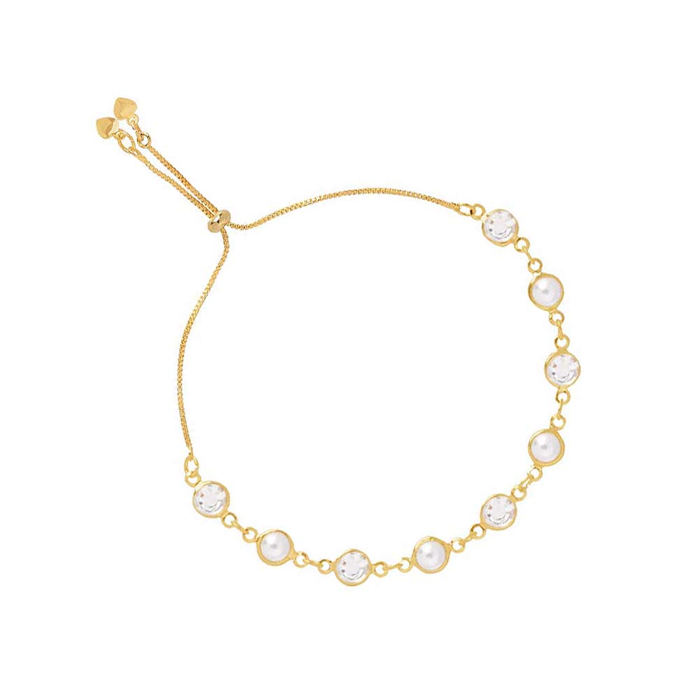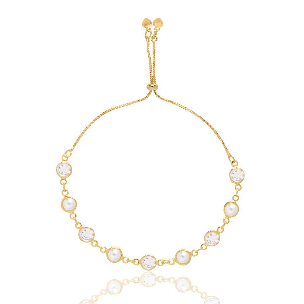 Kit 14 Pulseira Madrinha Pérolas E Cristal Folheado A Ouro 18k