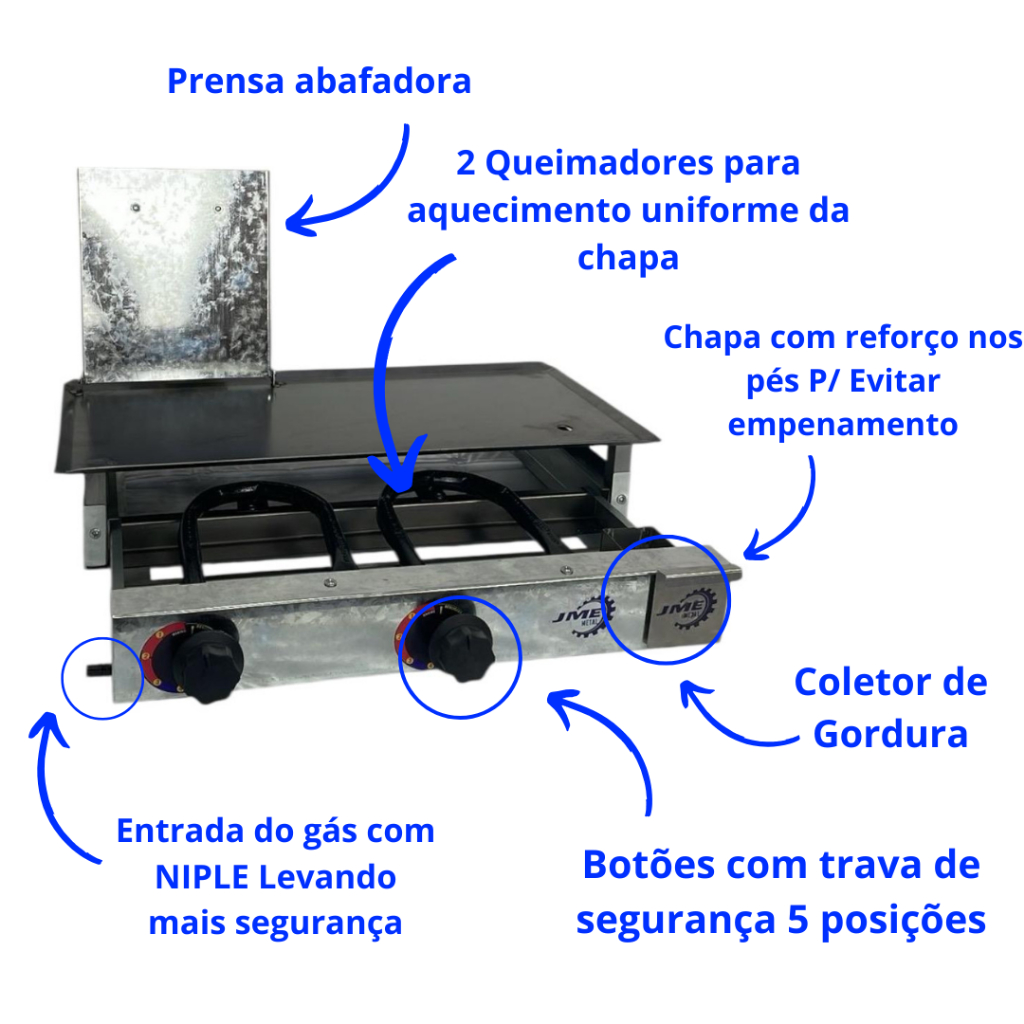 Chapa de Lanche 60x30 cm Premium Reforçada Com Prensa para Hamburguer Hotdogs Porções