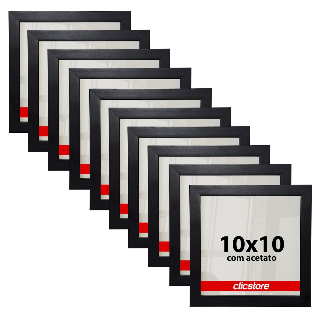Kit 10 Molduras Quadro 10x10 Com Acetato Foto Retrato Mini