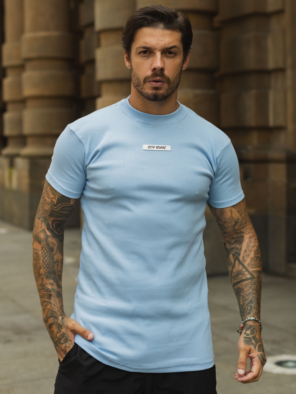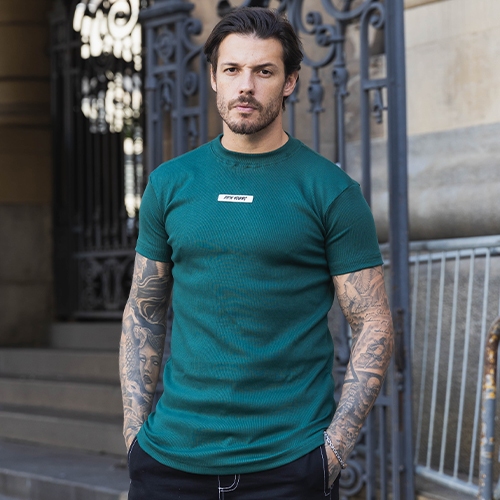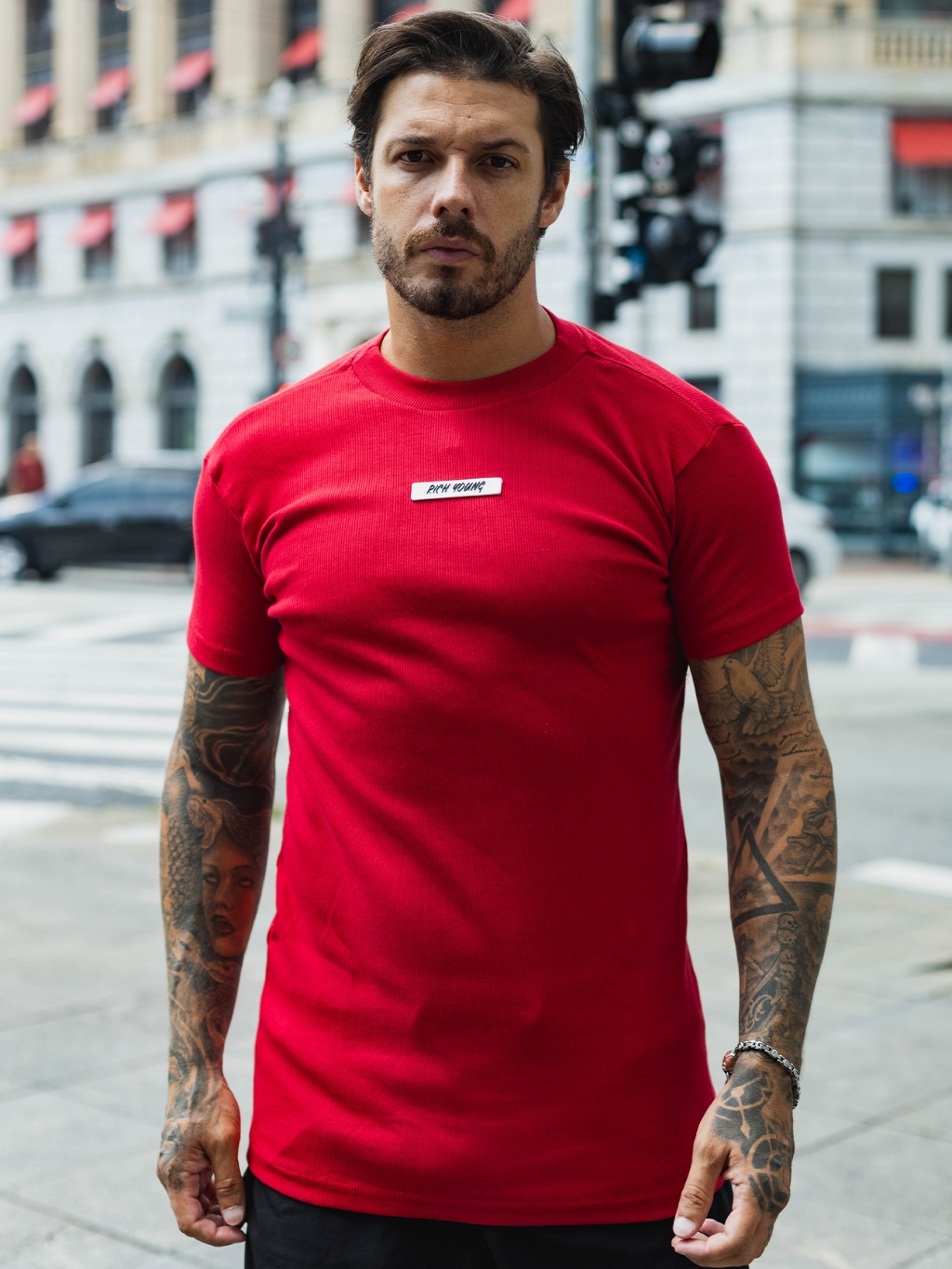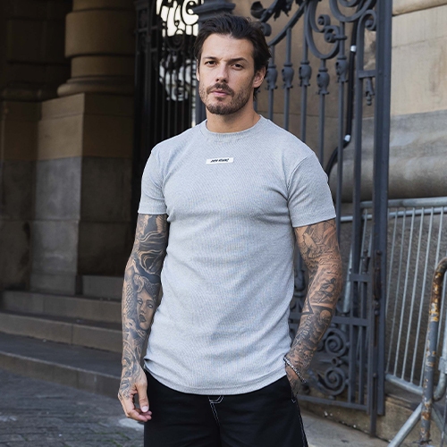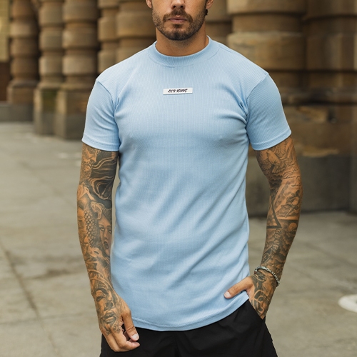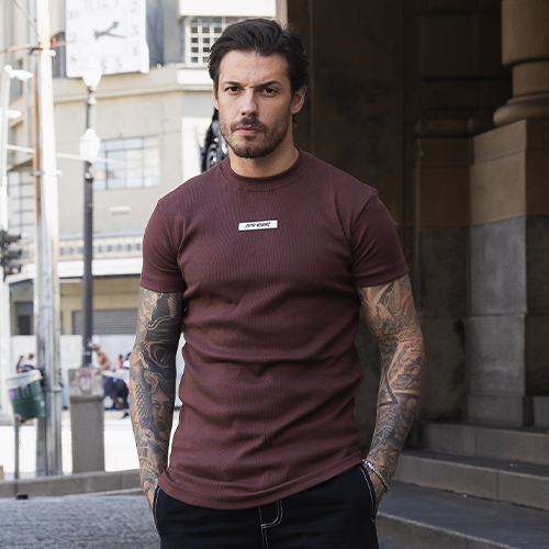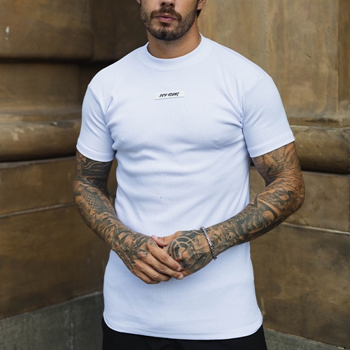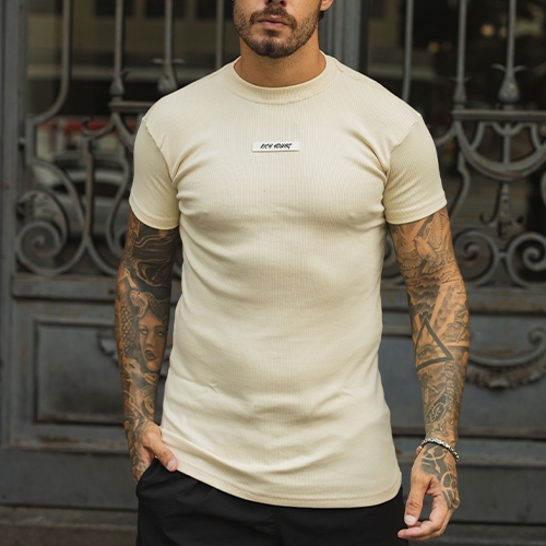 Camiseta Slim Canelada Borracha Estilo Americano Streetwear Justa ao Corpo Ribana