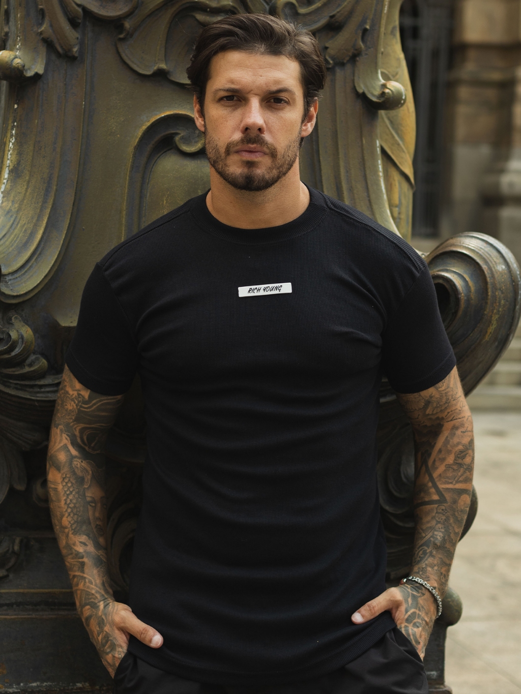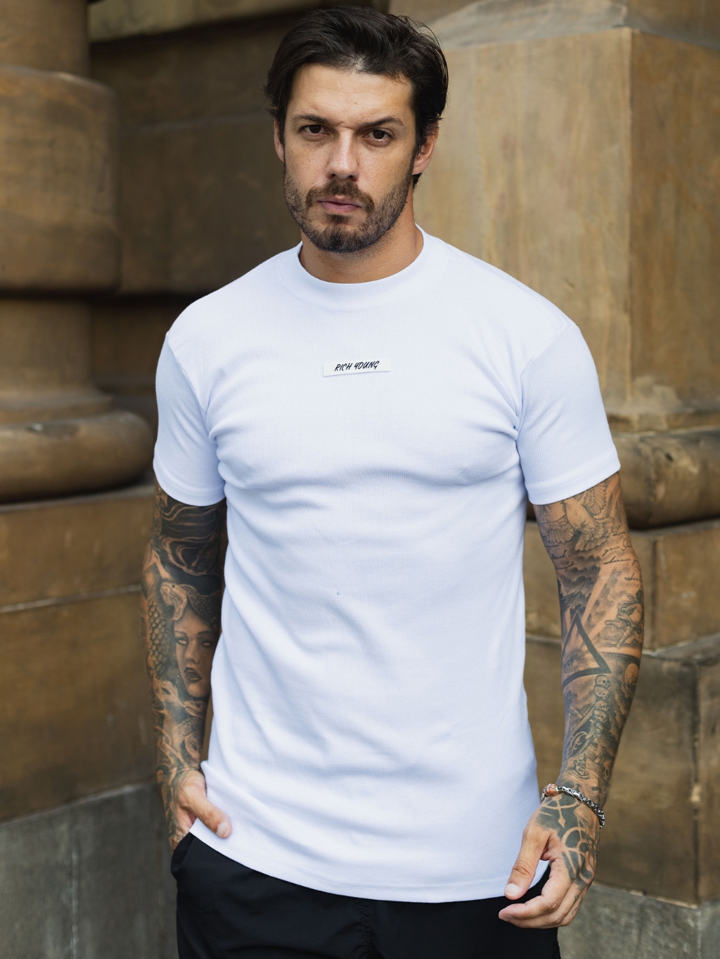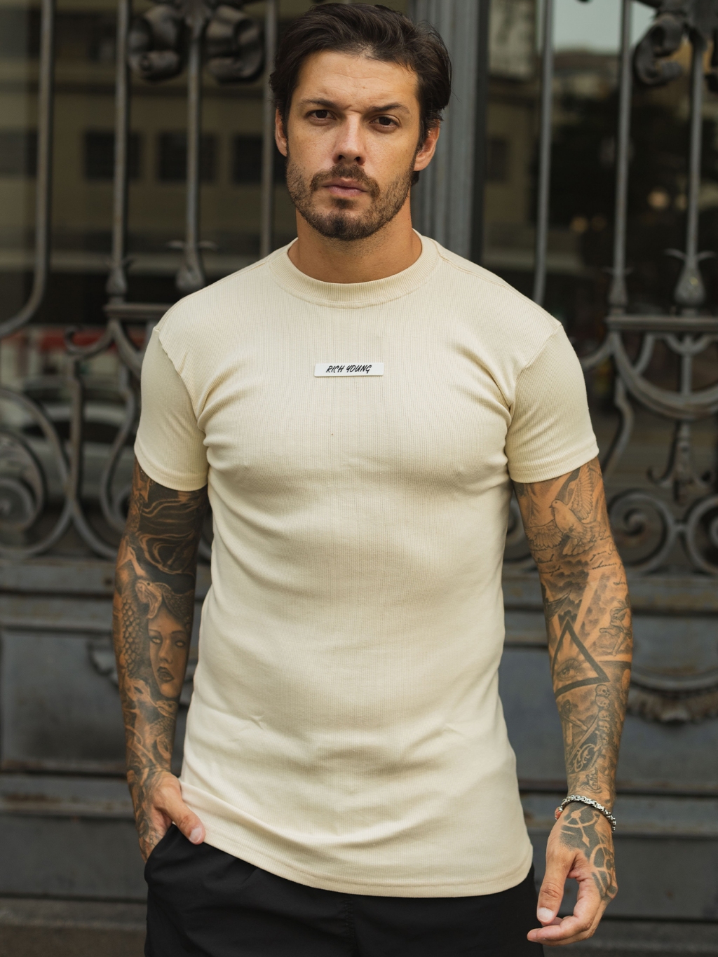 Camiseta Slim Canelada Borracha Estilo Americano Streetwear Justa ao Corpo Ribana