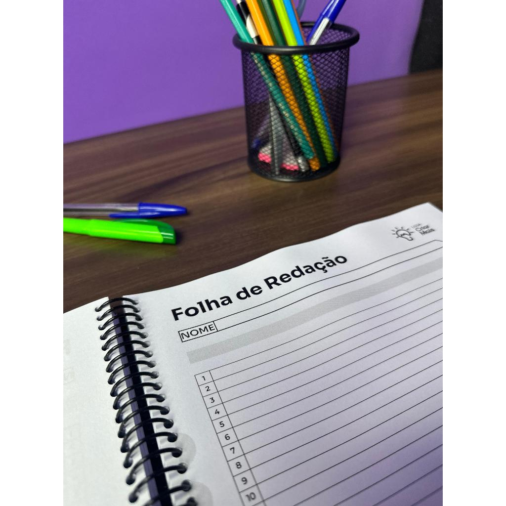 Caderno de Redações 100 Folhas de Treino para ENEM e Vestibular com dicas para fazer redação