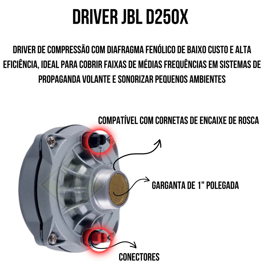 KIT C/ 1 DRIVER D250-X 100W RMS + CORNETA JBL HL 11-25 TRIO E CAPACITOR