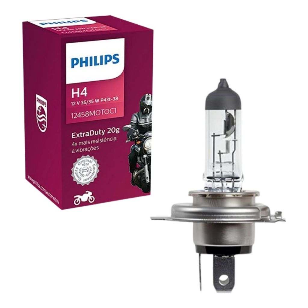 LÂMPADA HALÓGENA MOTO H4 PHILIPS EXTRA DUTY 35/35W 12V FAROL ALTO E BAIXO